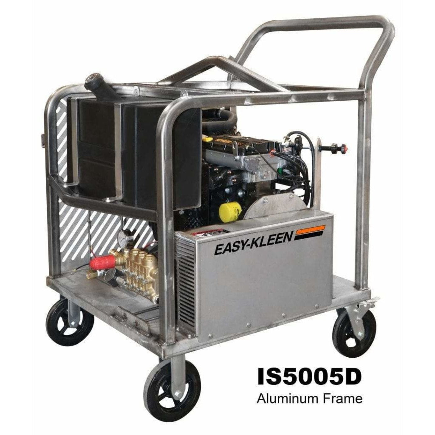 A: The IS5005D is a diesel-powered cold water pressure washer delivering 5 GPM at 5000 PSI. It's engineered for heavy-duty industrial applications like surface preparation and cleaning.