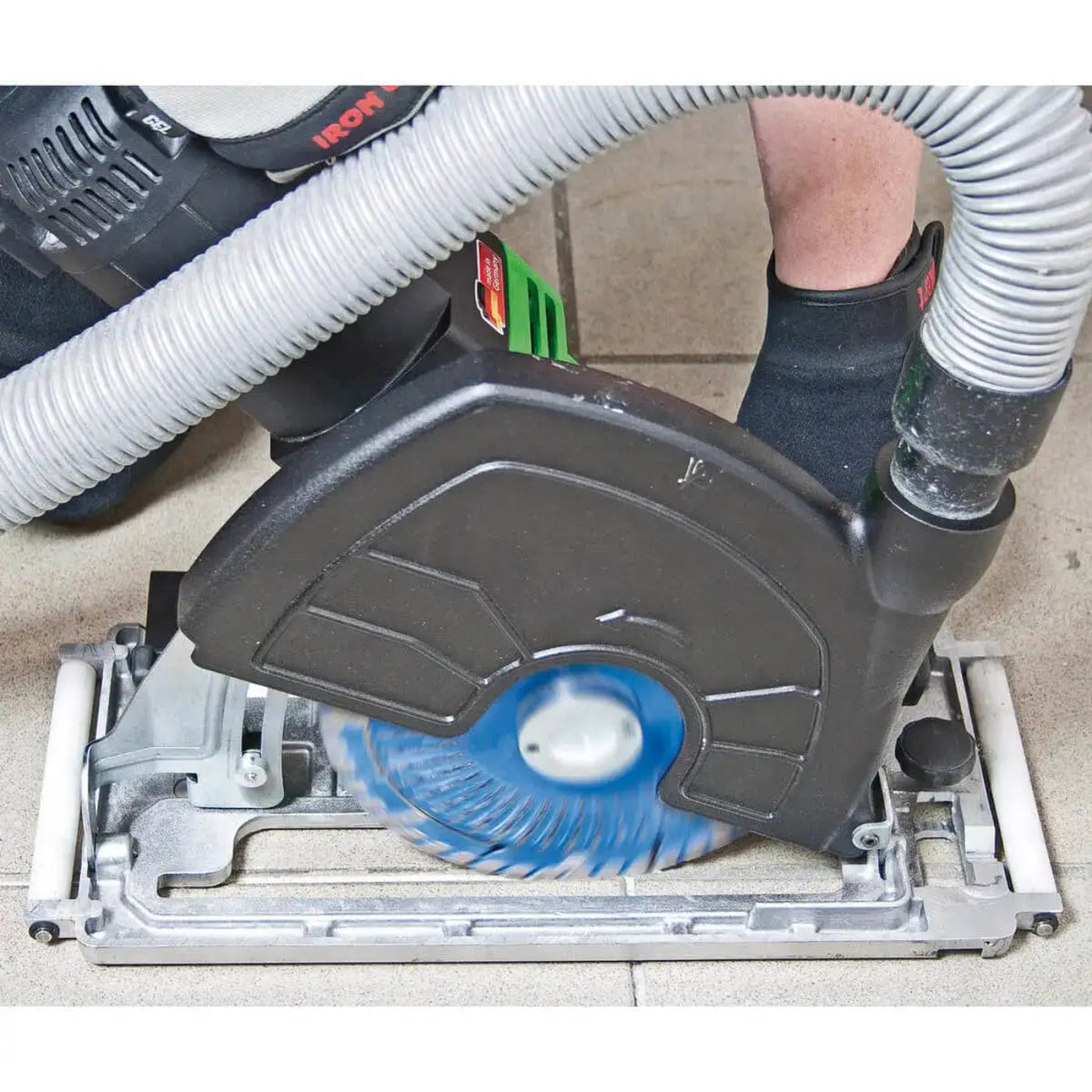 - Direct 1-3/8" diameter hose connection to a dust collection vacuum for dry cutting