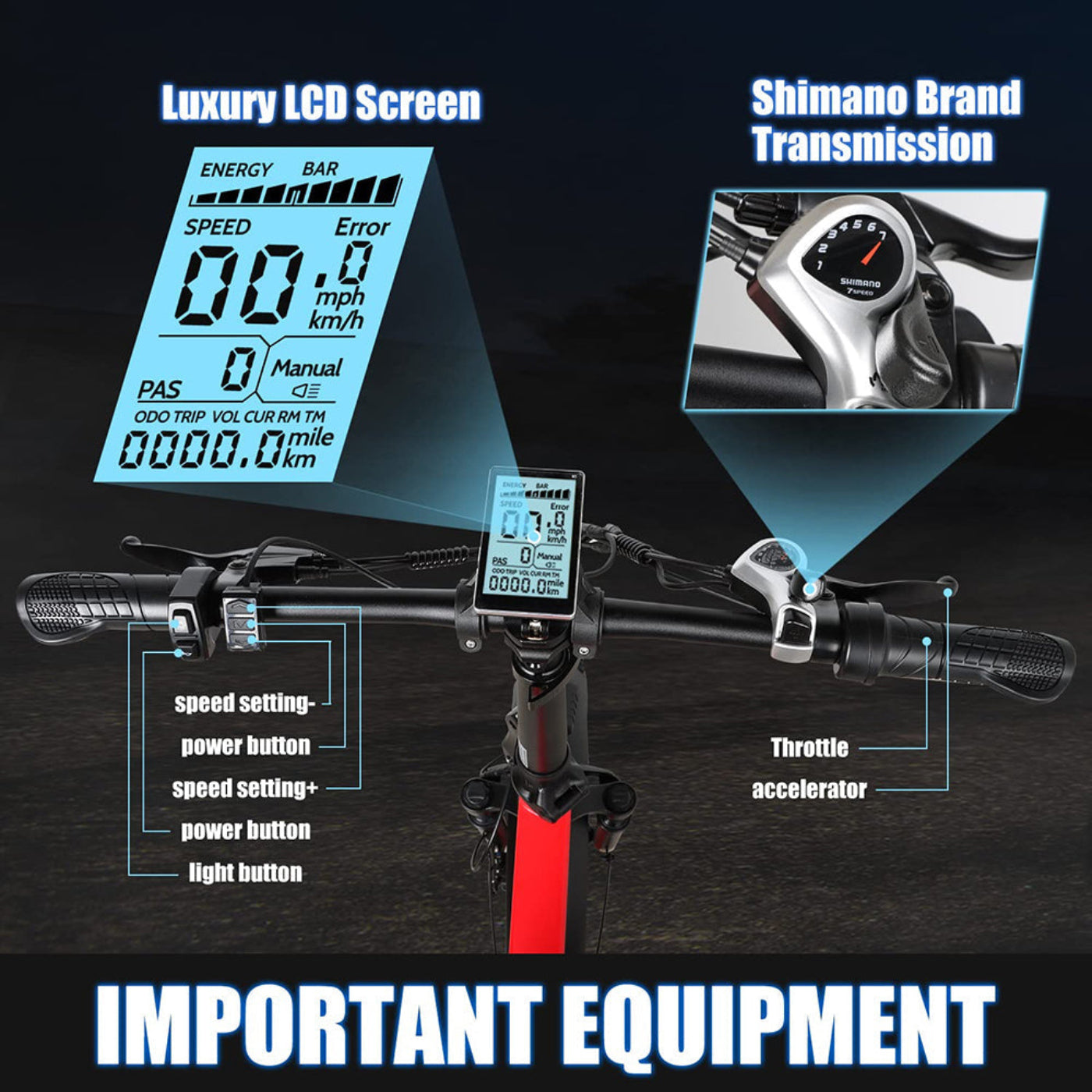 LCD Display: Includes an LCD display that provides real-time information on speed, battery level, and mileage, keeping riders informed at a glance.