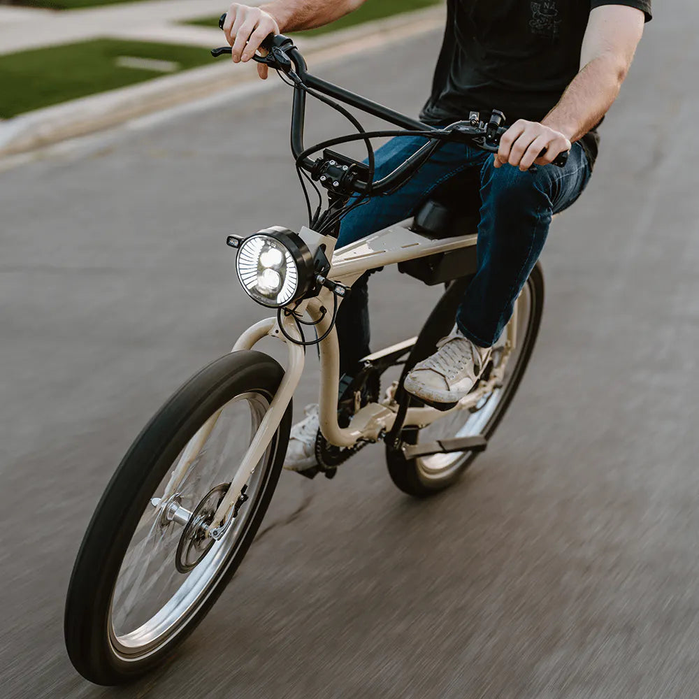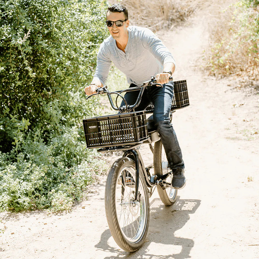 Our most popular choice for young adults and teens (and other adventurous riders), Model J performs on-road as well as off-road. The long, slick seat offers room, support, and style, with quality components for premium safety. The EBC Ready-Designed Model J comes in Black or Ocean Breeze and features a large round front light and rear lights, leather stitched grips, chain guard, 24-inch wheels, and rugged 3-inch tires.