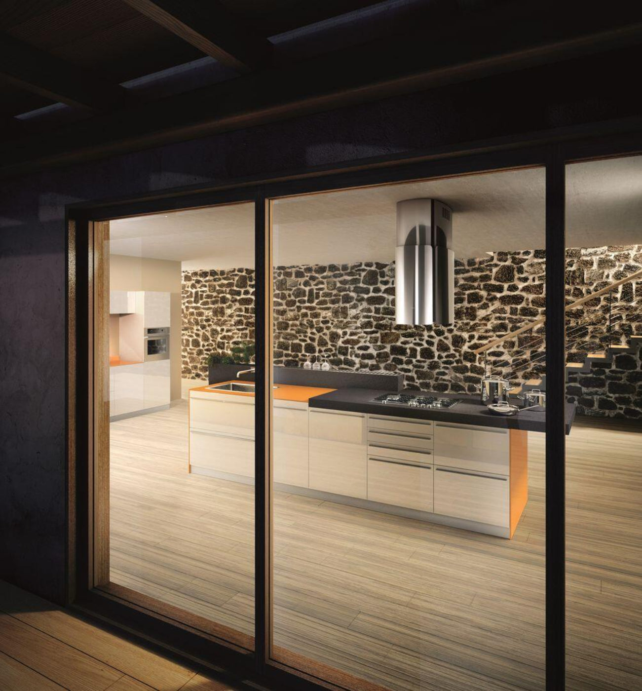 A: The polished stainless steel finish and modern, minimalistic design make this hood a stylish, high-performance centerpiece for any kitchen island.