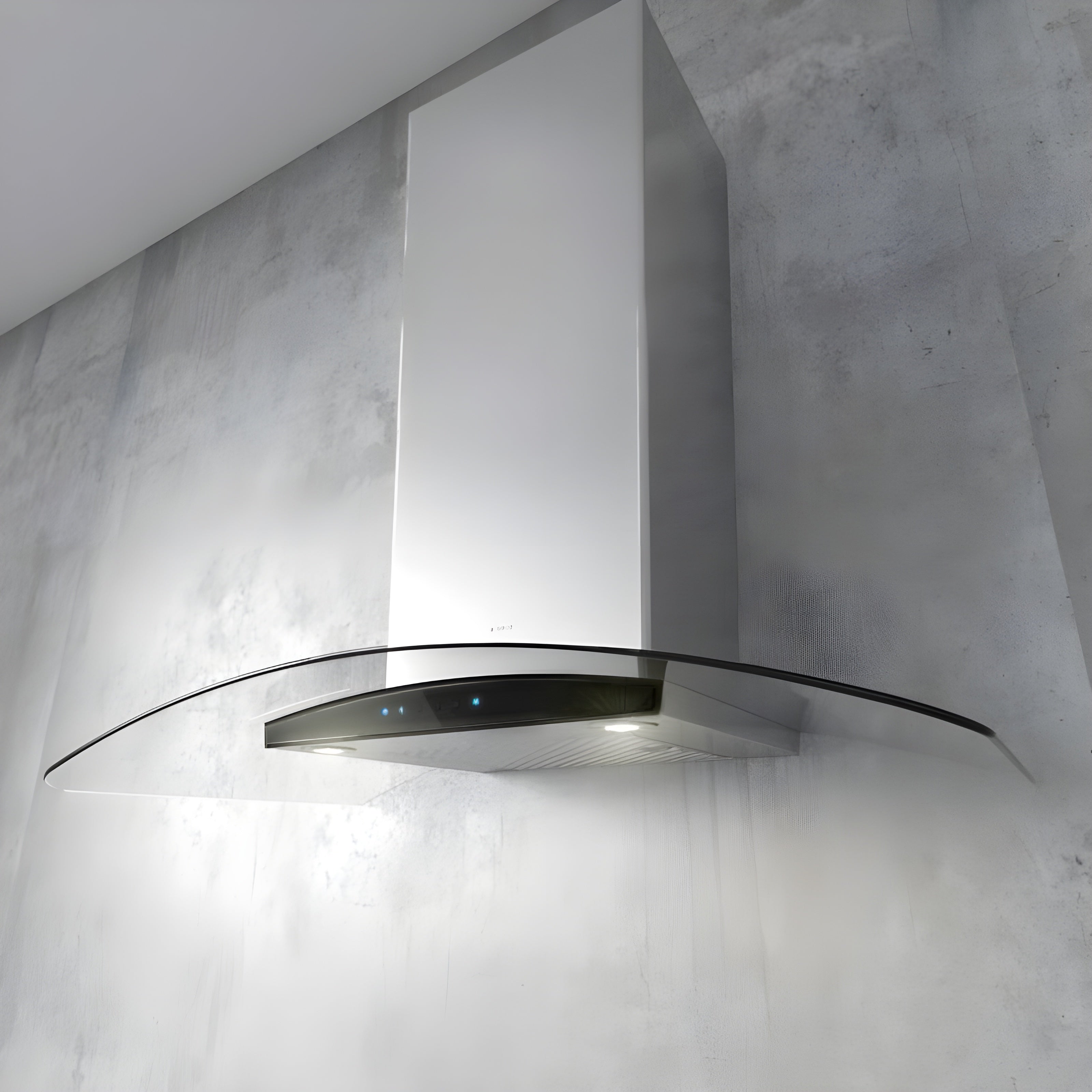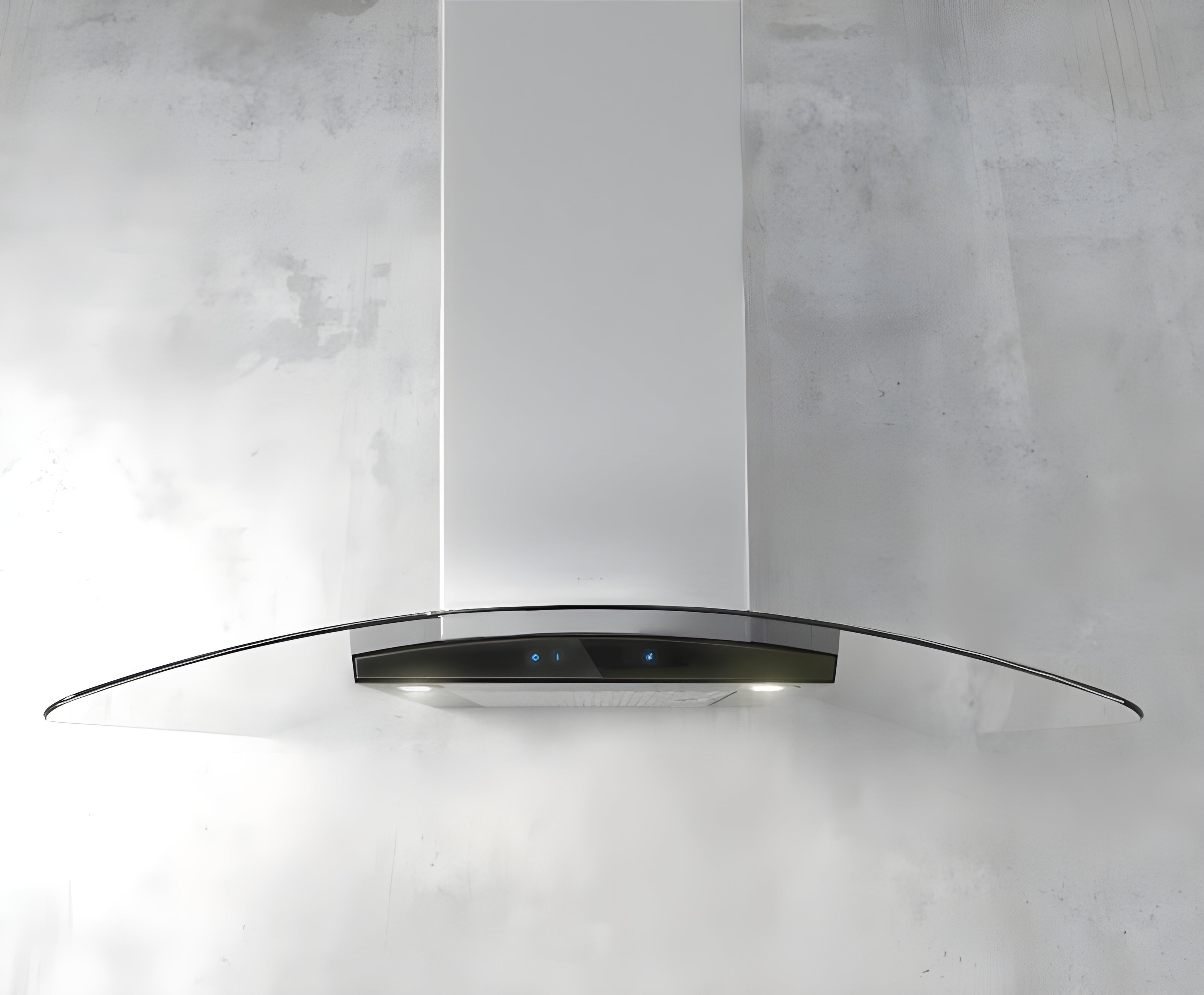Sleek & Modern Design – A stunning combination of stainless steel, black glass, and clear glass canopy that adds a touch of elegance to your kitchen.