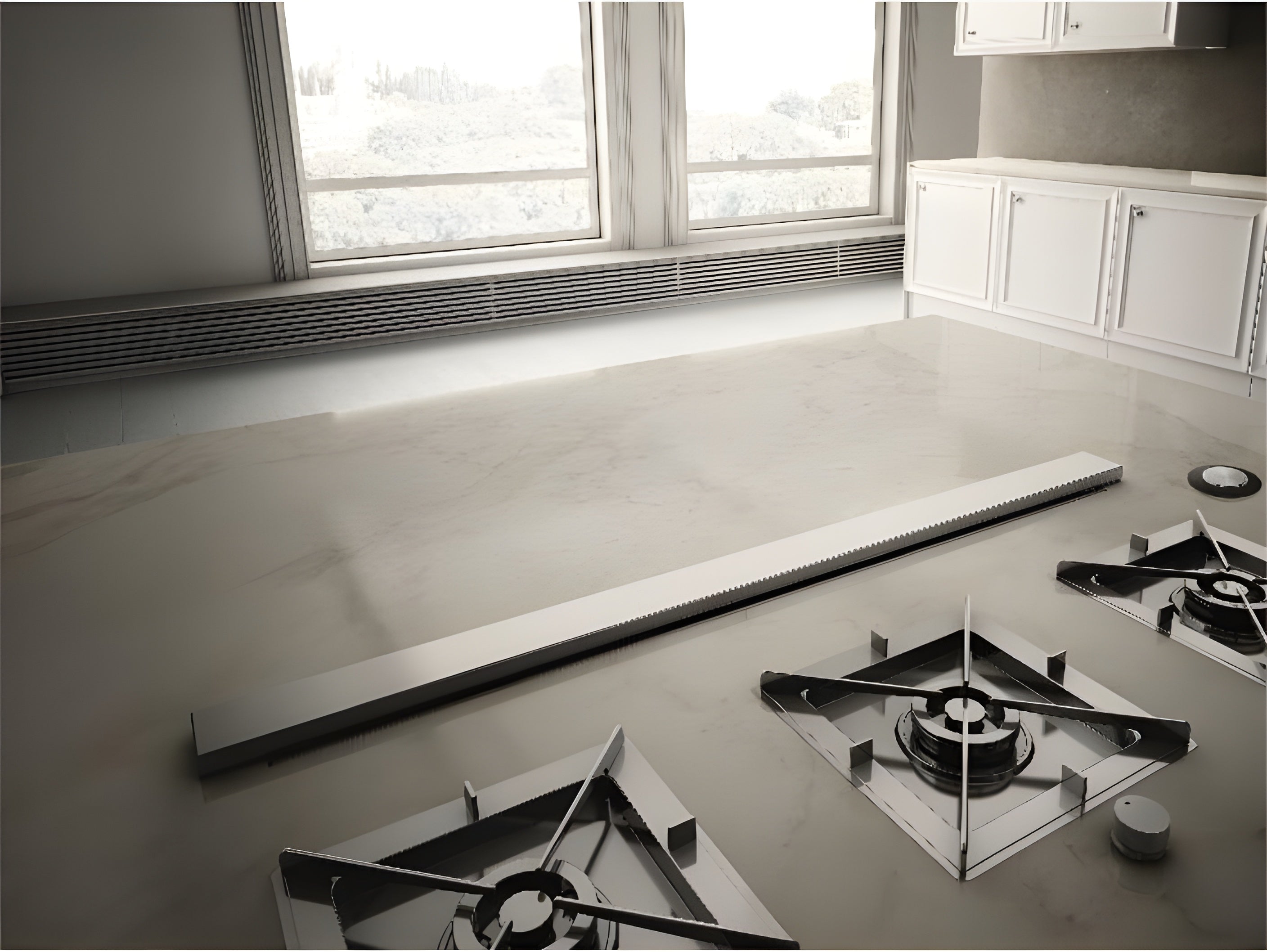 A: Perfect for modern, open-concept kitchens needing a space-saving, high-performance ventilation solution.