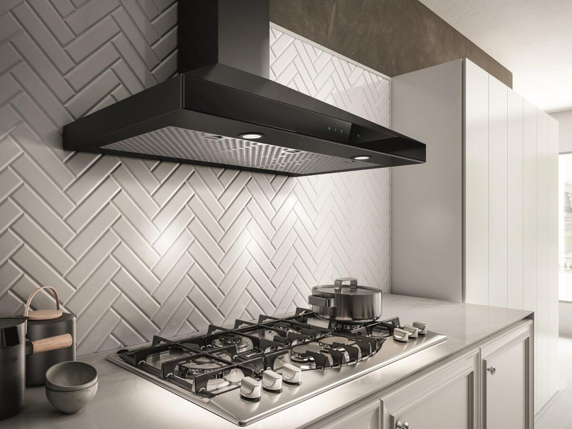 Sleek Modern Design: The Elica VARNA BLACK 30" Wall Mount Hood combines black stainless steel with black glass, offering a contemporary aesthetic that enhances modern kitchen decors.