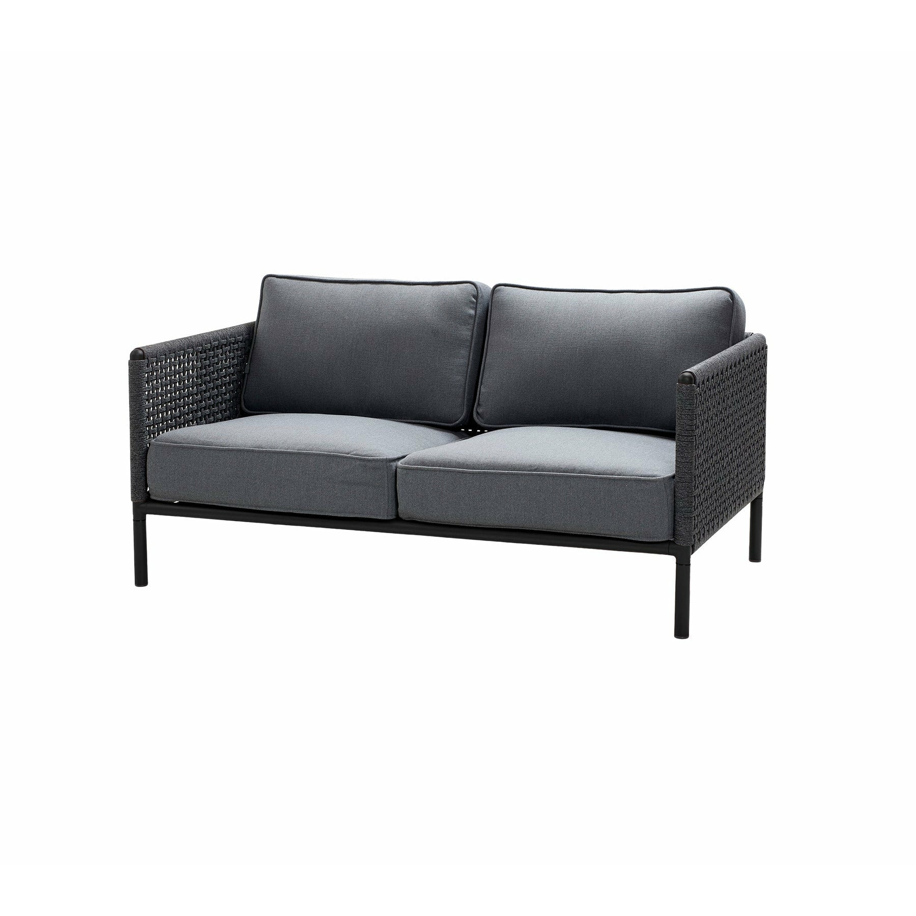 A: The Cane-Line Encore 2-Seater Sofa is made with a durable aluminum frame and premium outdoor fabric cushions. The materials are designed to withstand the elements, providing long-lasting comfort and style for your outdoor seating area.