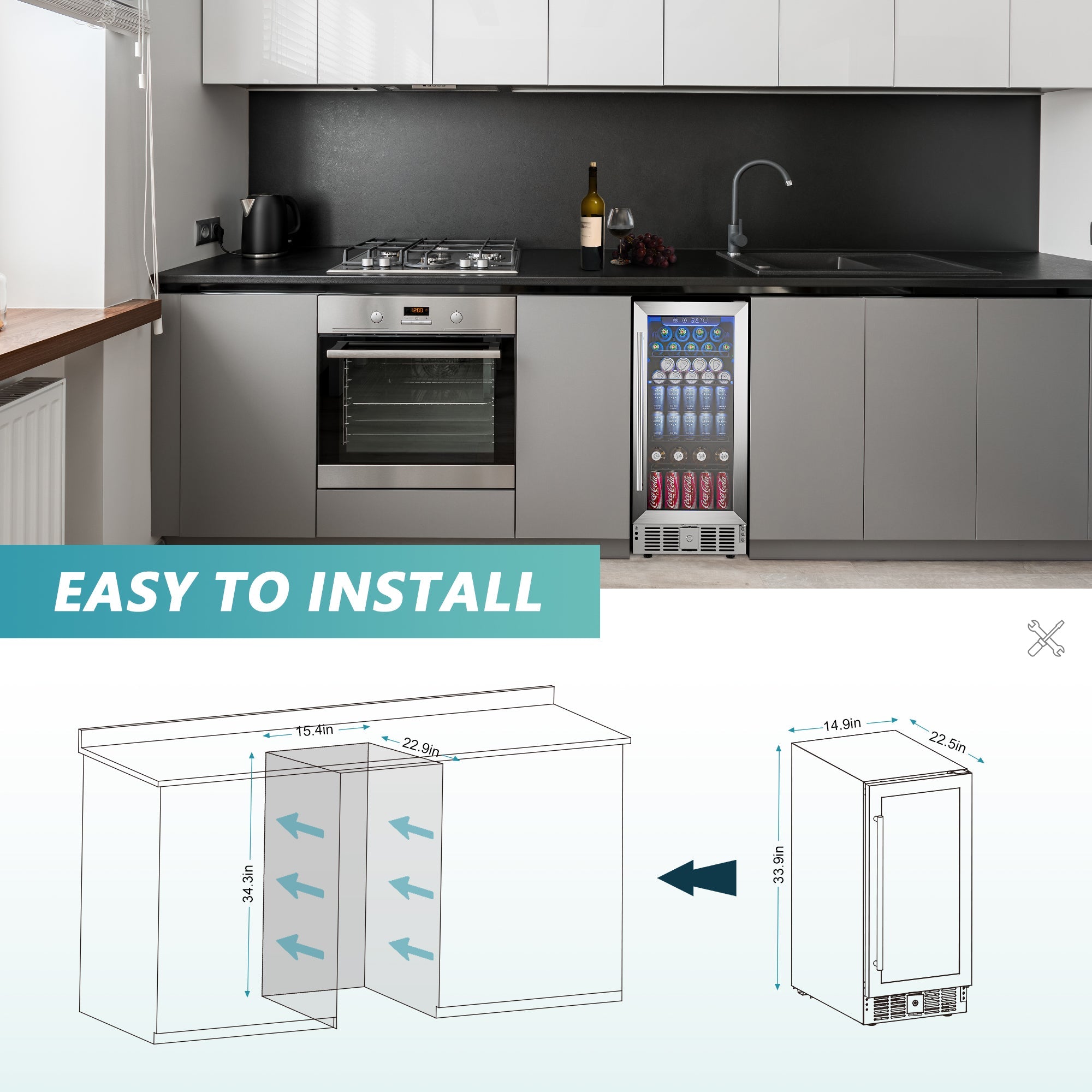 Compact & Efficient: 15-inch design fits perfectly under counters, saving space while offering efficient cooling for beverages and wine.