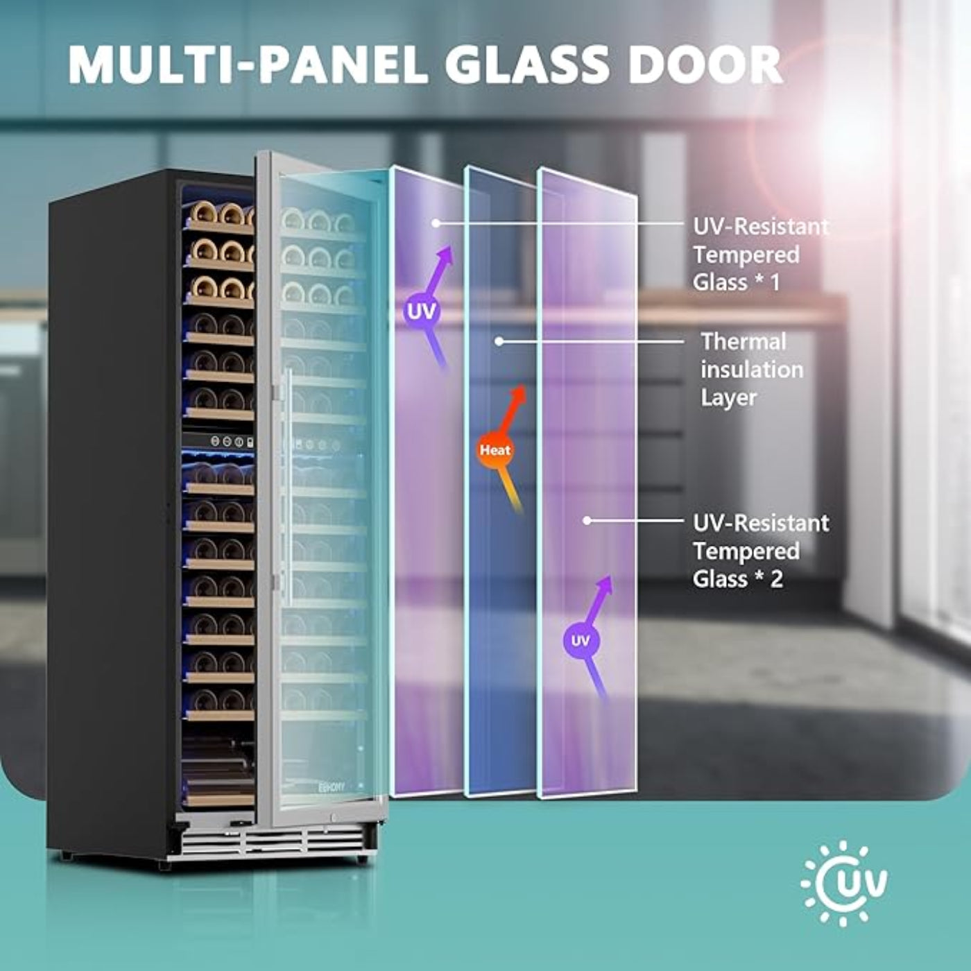 • LATEST COMPRESSOR AND FAN - This wine cooler refrigerator comes with an advanced compressor and fan that offer faster, more efficient, and stable cooling and humidity. It is also energy-saving and operates almost noiselessly and vibration-free, giving you a peaceful home environment. Enjoy a quiet living space with this state-of-the-art wine refrigerators