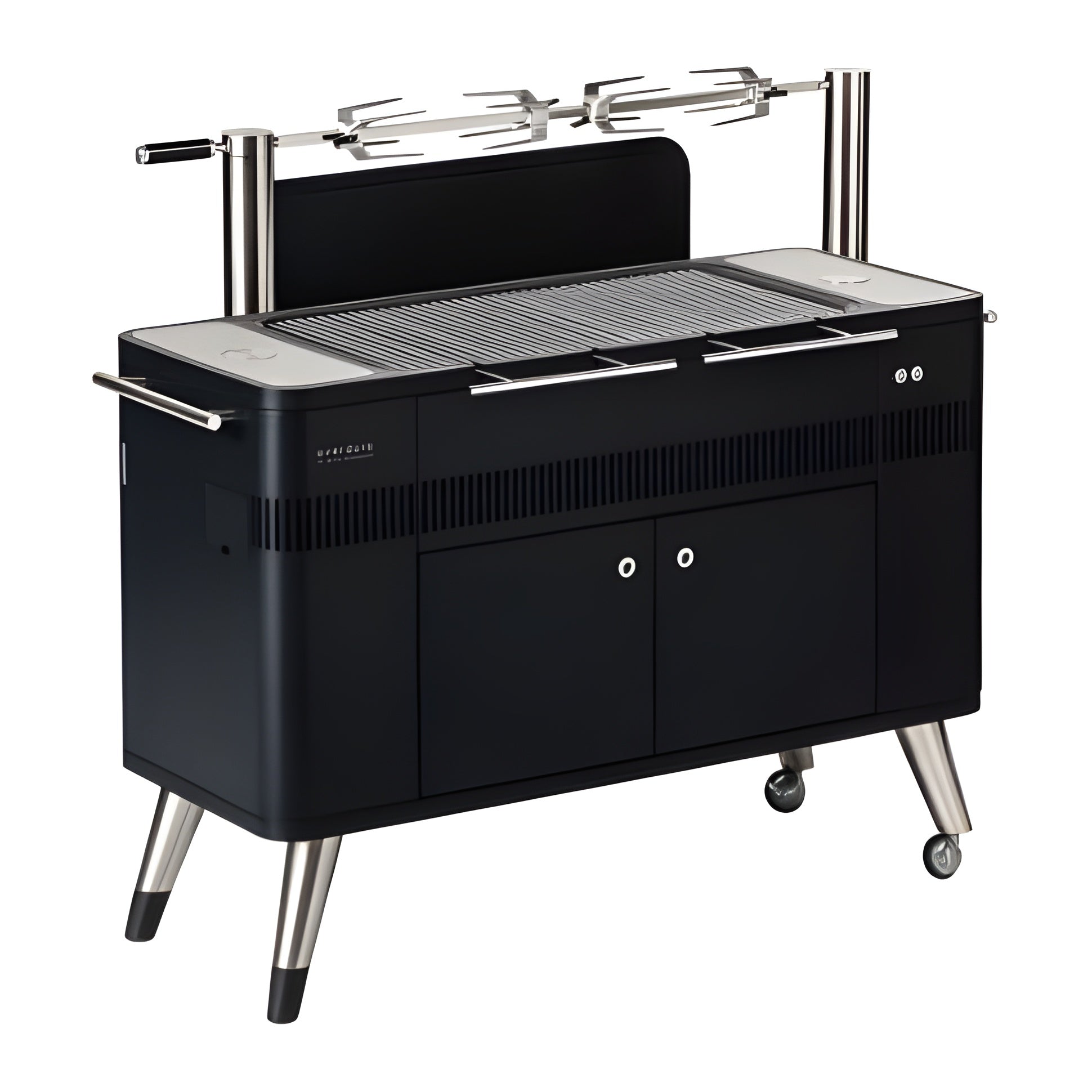 A: Yes! It has a built-in rotisserie system, adjustable temperature control, and a removable ash tray for easy cleanup.