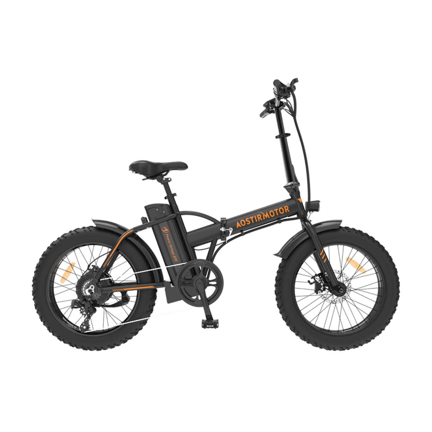 A: The Aostirmotor A20 is a foldable electric bike equipped with a 500W rear hub motor and a 36V 13Ah lithium-ion battery. It's perfect for both urban commuting and off-road adventures, featuring fat tires for extra traction.