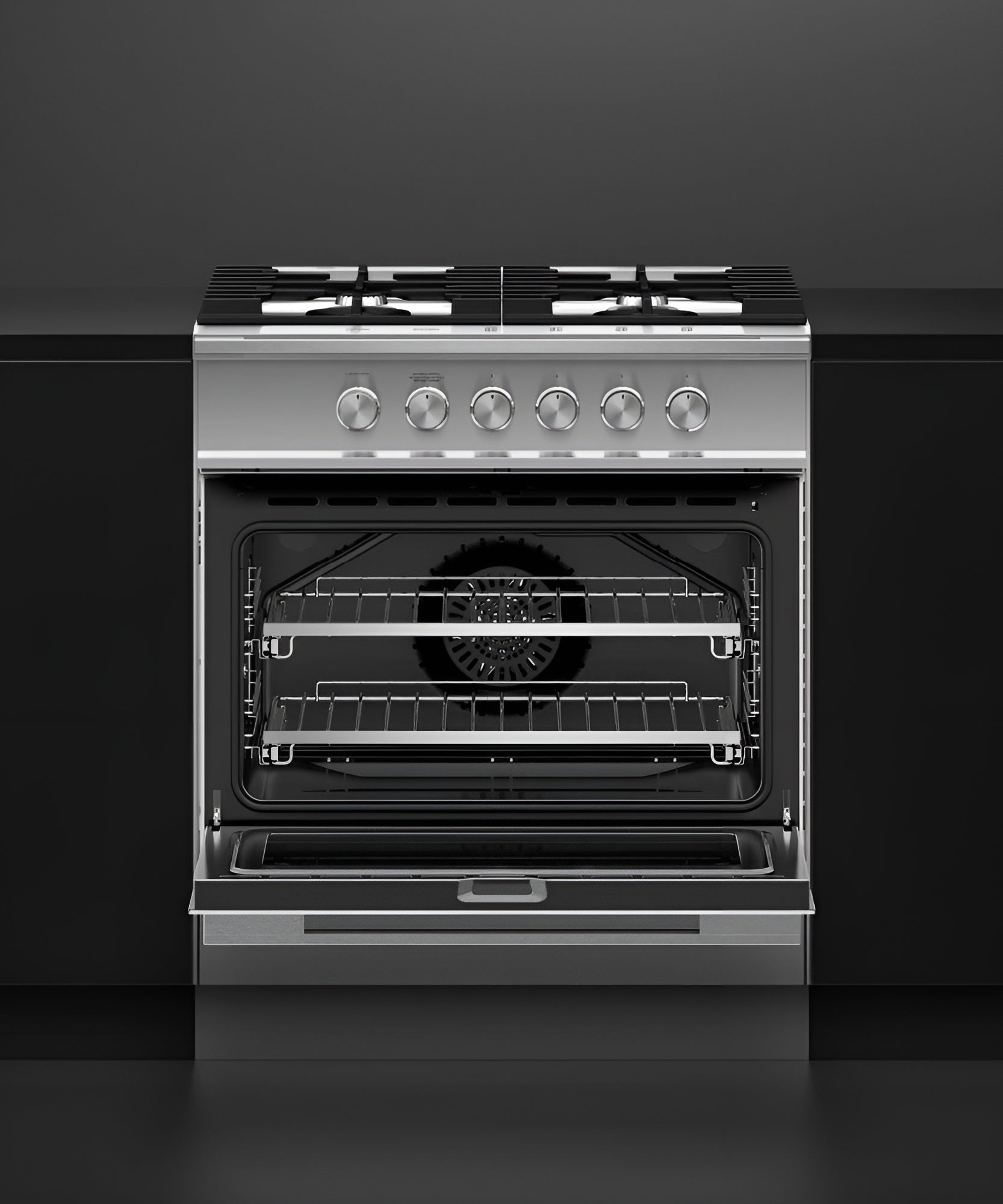 Add contemporary style to your kitchen, and enjoy the instant response and precision of a gas-fueled oven and cooktop.(BR)Finish Stainless Steel