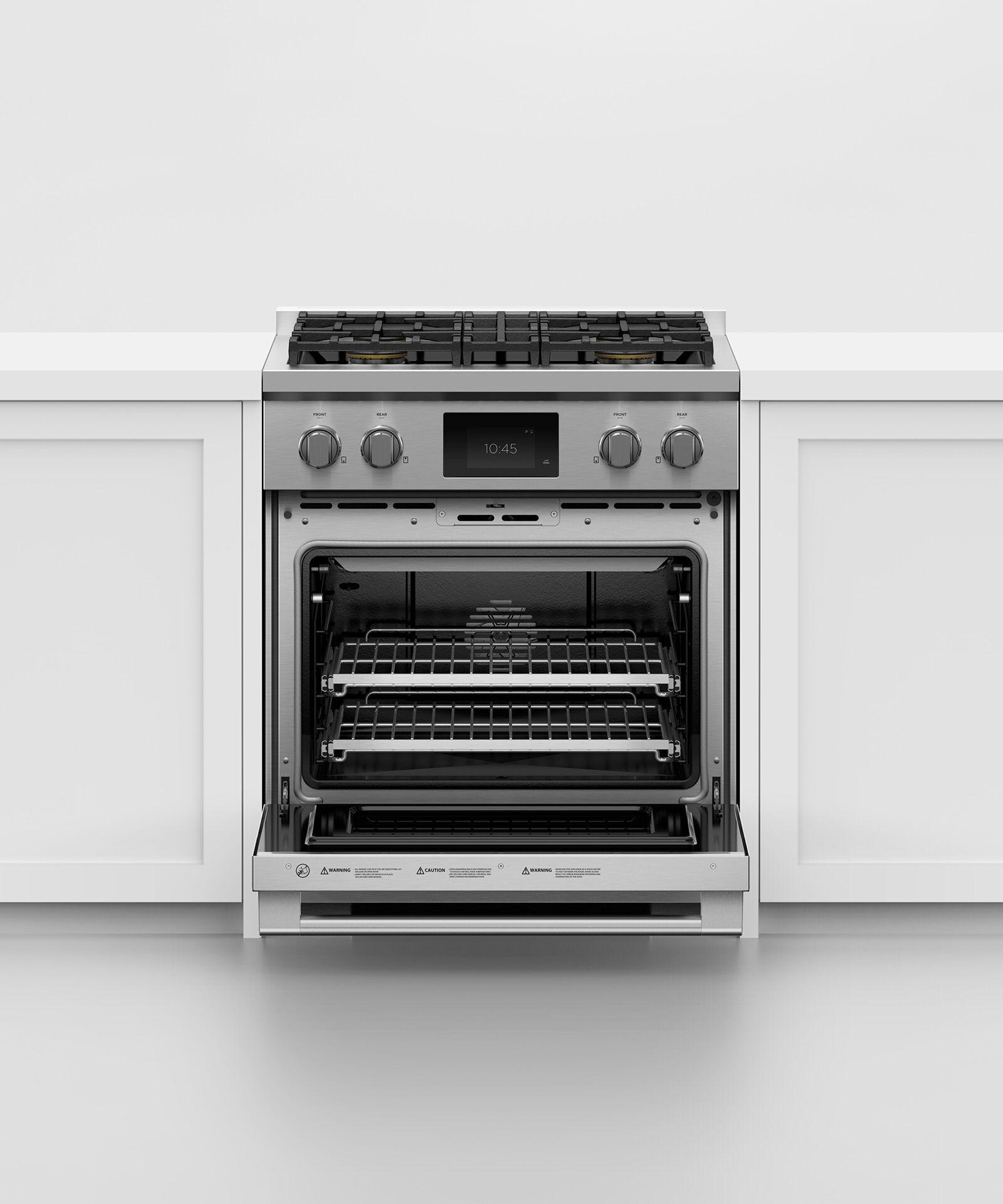 A: The Fisher & Paykel RDV3304N is a 30" dual fuel range featuring 4 gas burners, an electric oven, and a self-cleaning function for efficient cooking and easy maintenance.