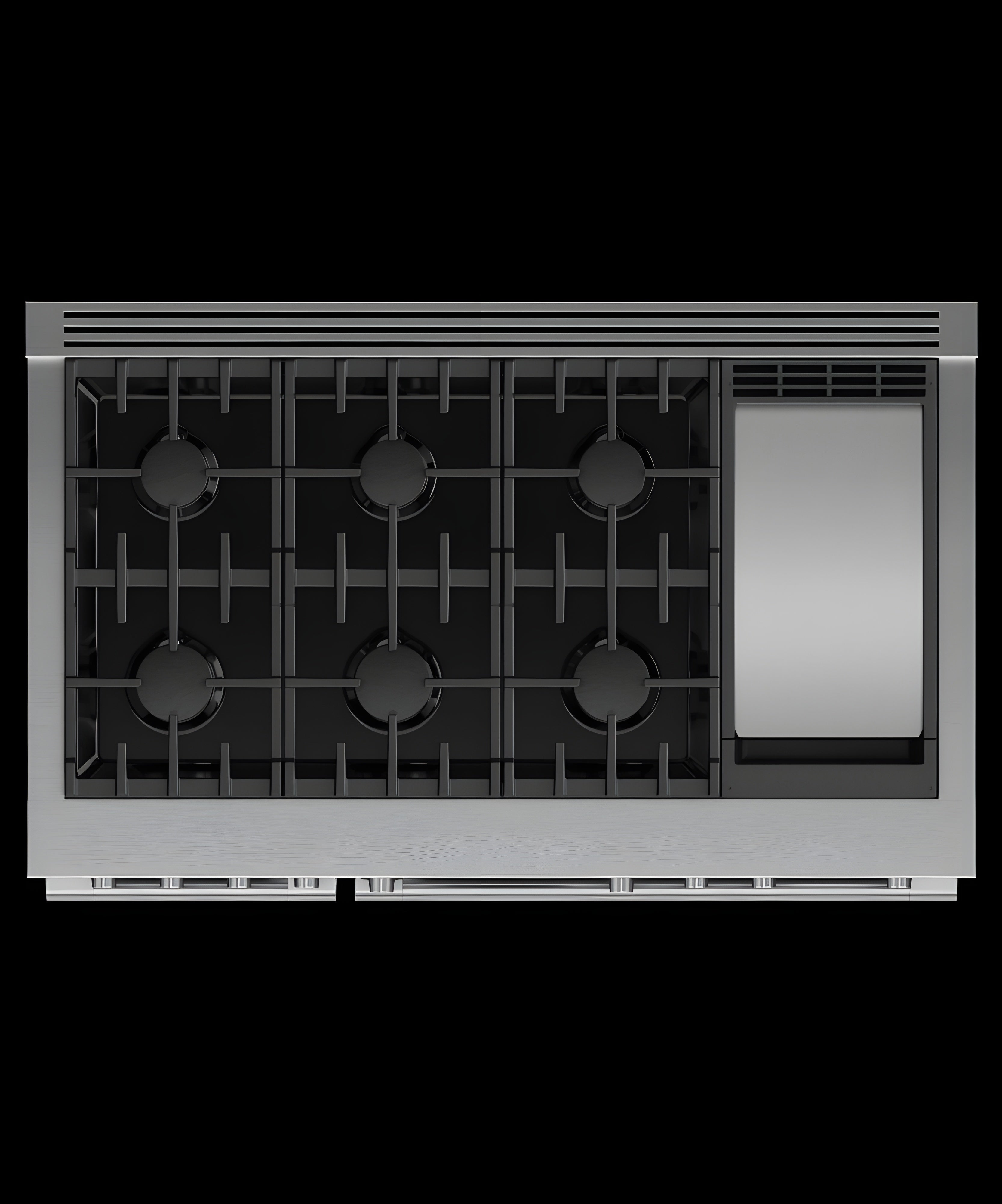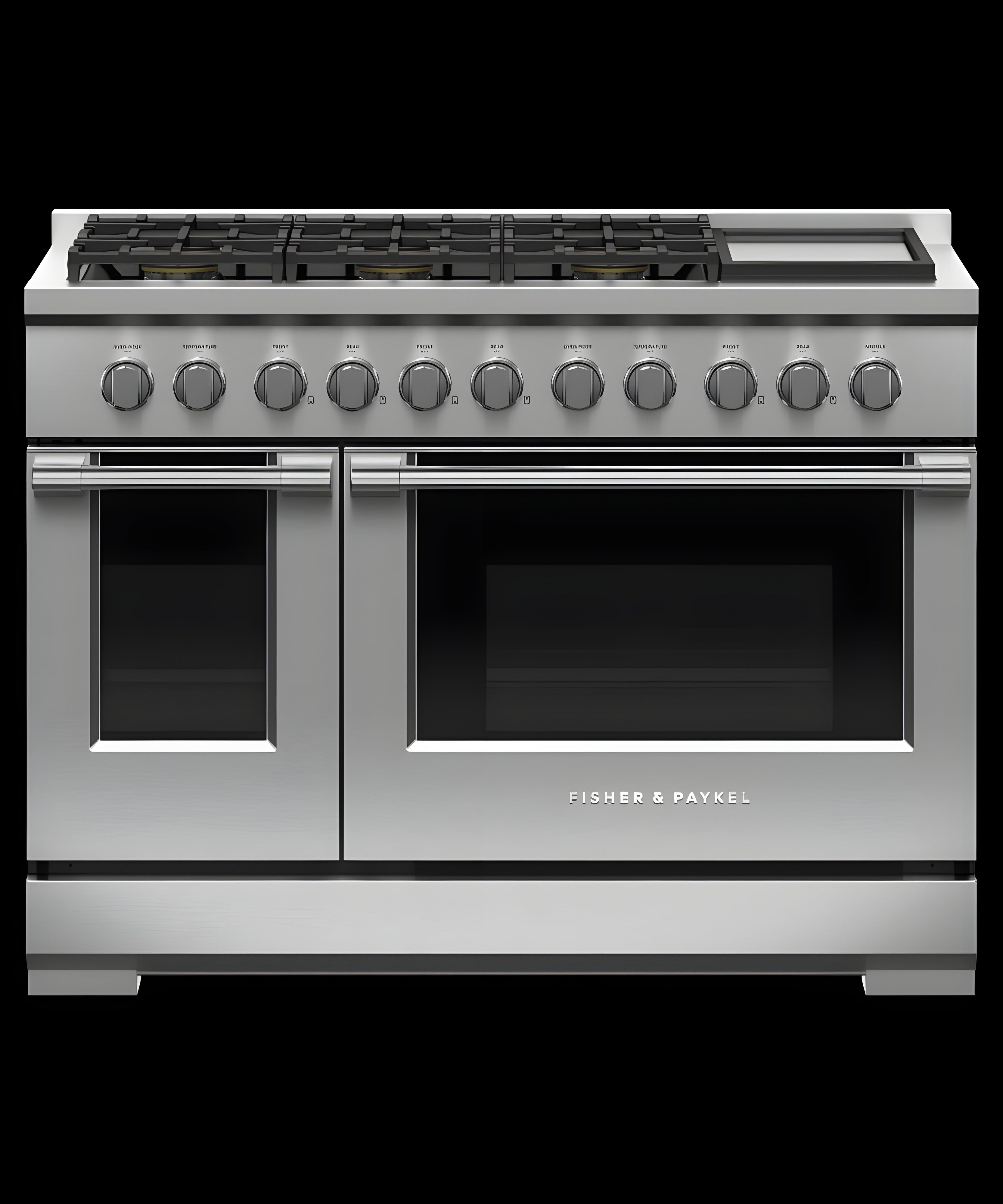 Q: What are the dimensions of the FISHER & PAYKEL RHV3484N Dual Fuel Range?