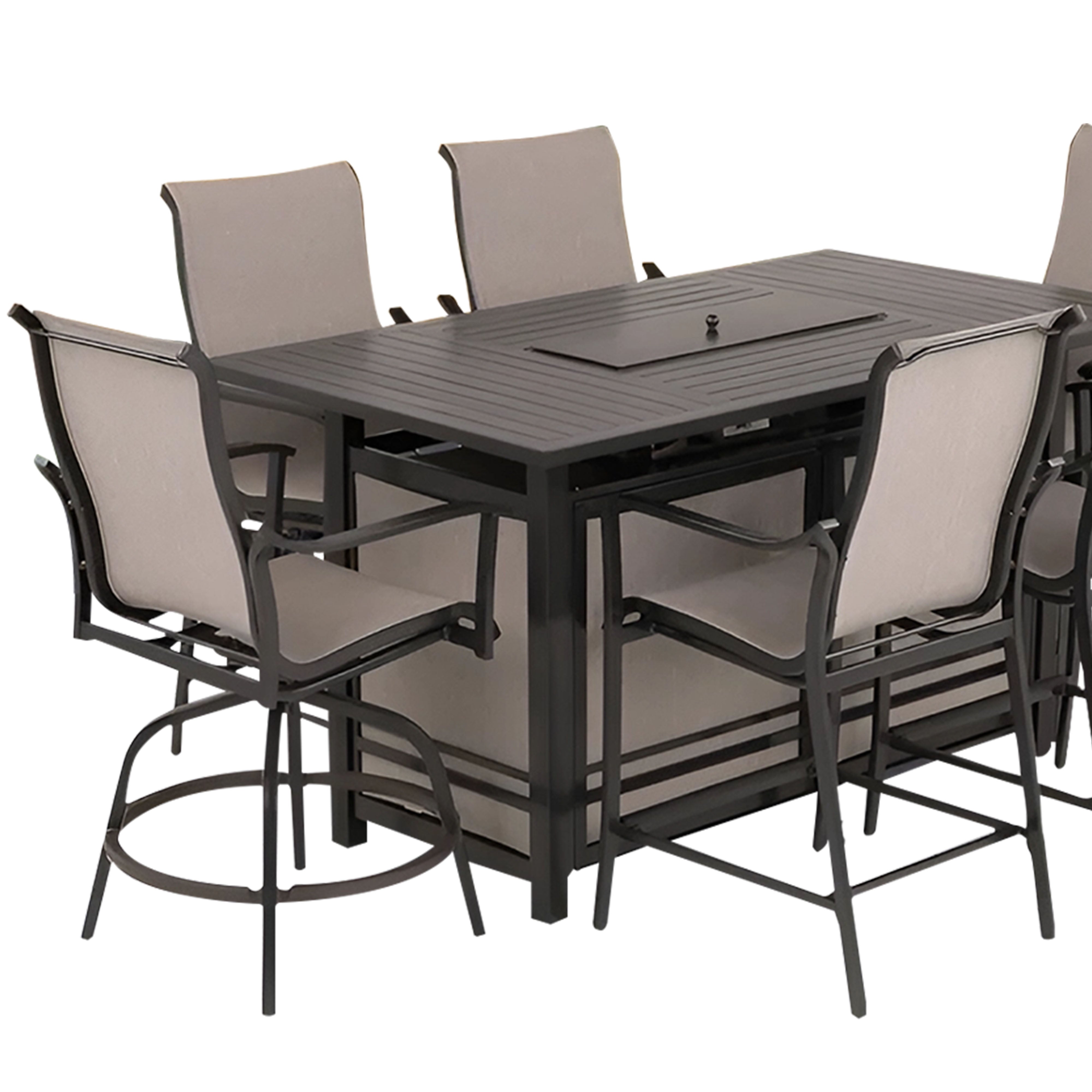 With its stylish design, durable construction, and comfortable sling seating, this set is not just furniture but also an investment in years of outdoor enjoyment and entertaining. Upgrade your outdoor dining setup with the Manhattan 6-Piece High Dining Chair Set from Four Seasons Courtyard.