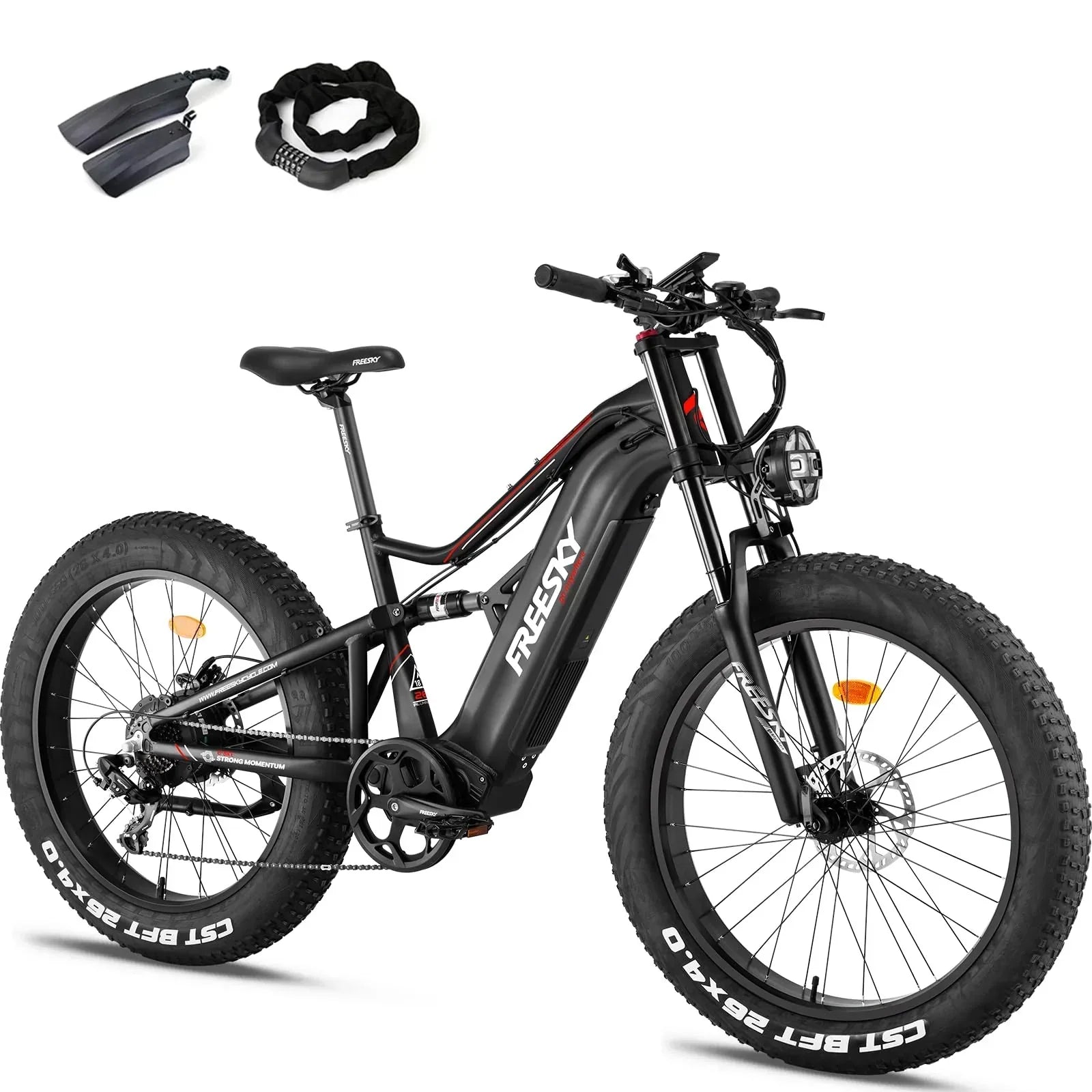 A: Absolutely! The 26-inch fat tires ensure exceptional stability and traction, making it perfect for mountain trails, sand, snow, and other rugged terrains.