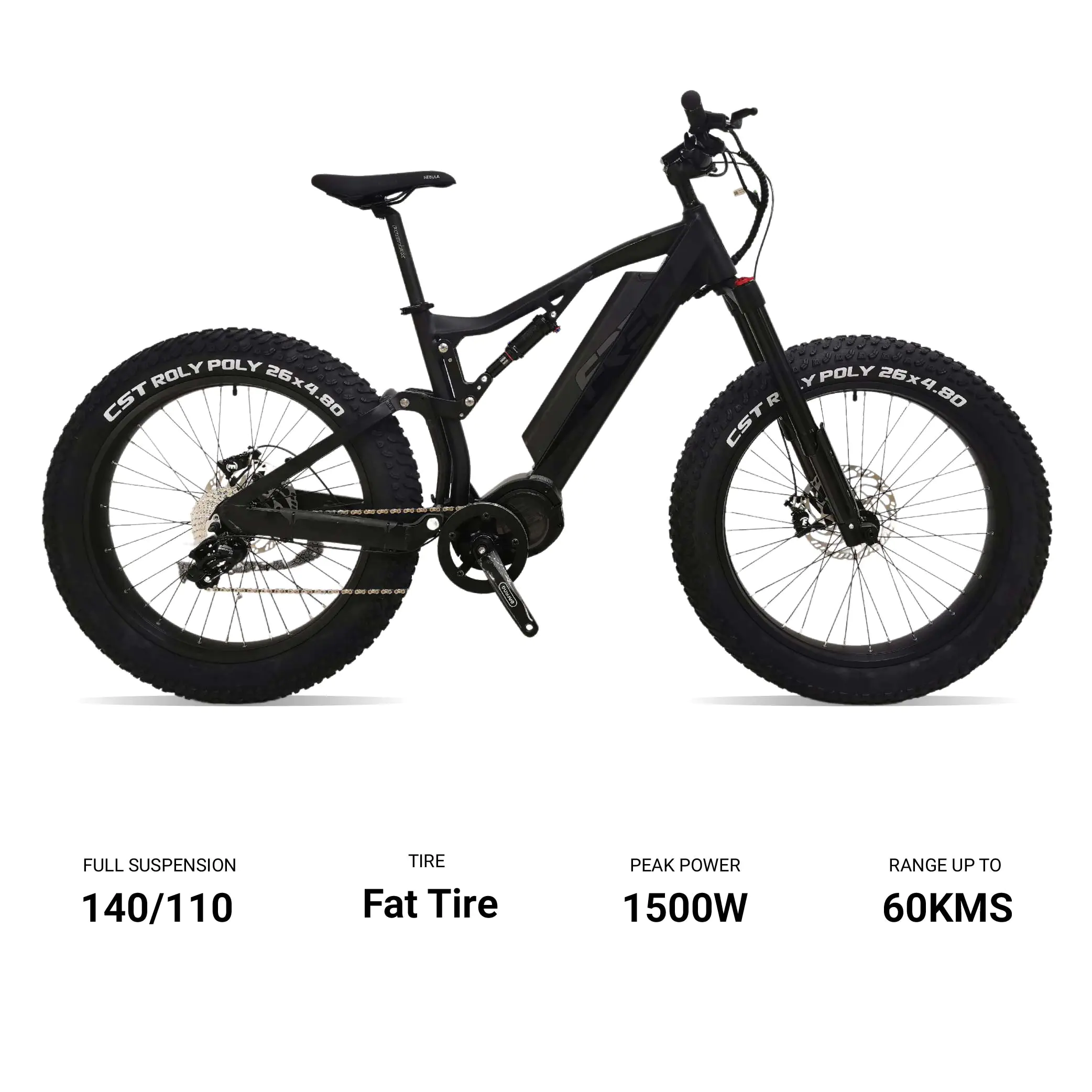 The full-suspension feature helps absorb shocks from rough terrains, reducing fatigue and allowing riders to enjoy a more comfortable and stable experience on bumpy trails.