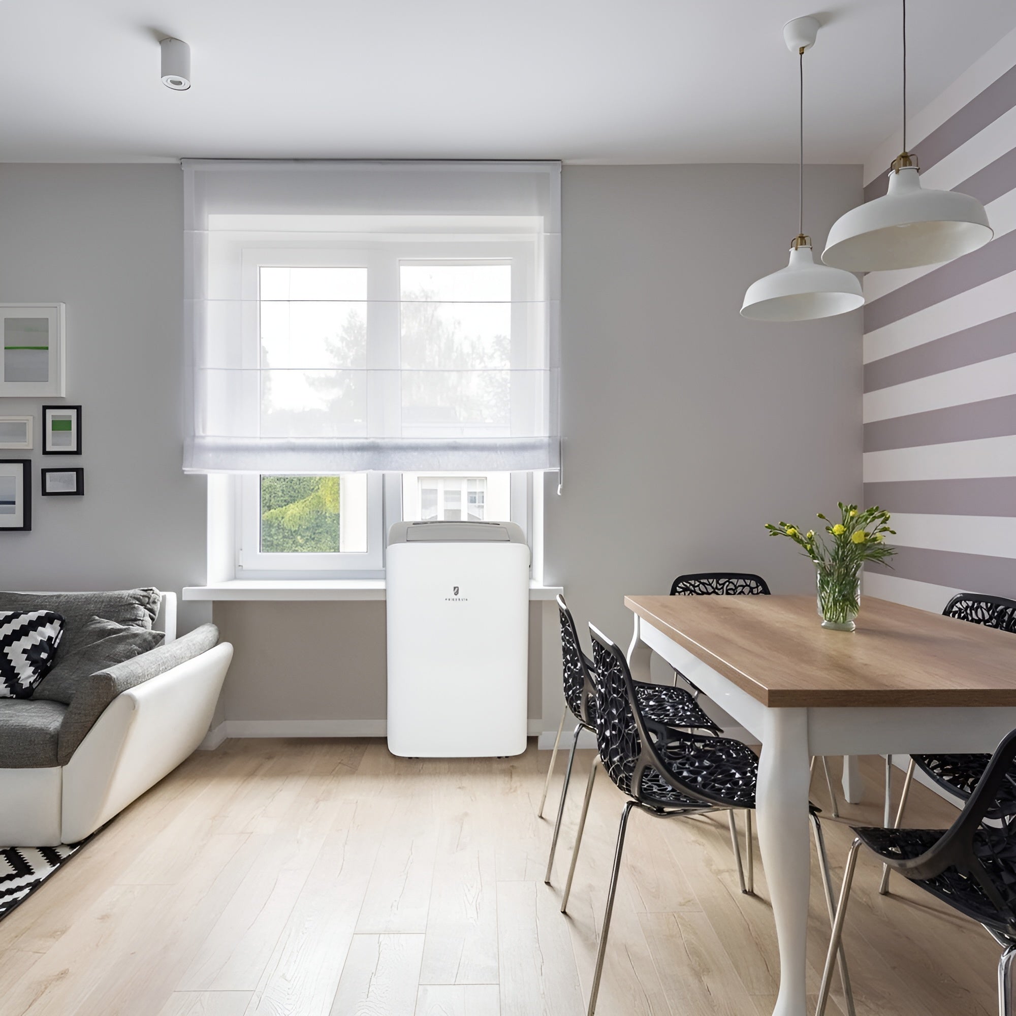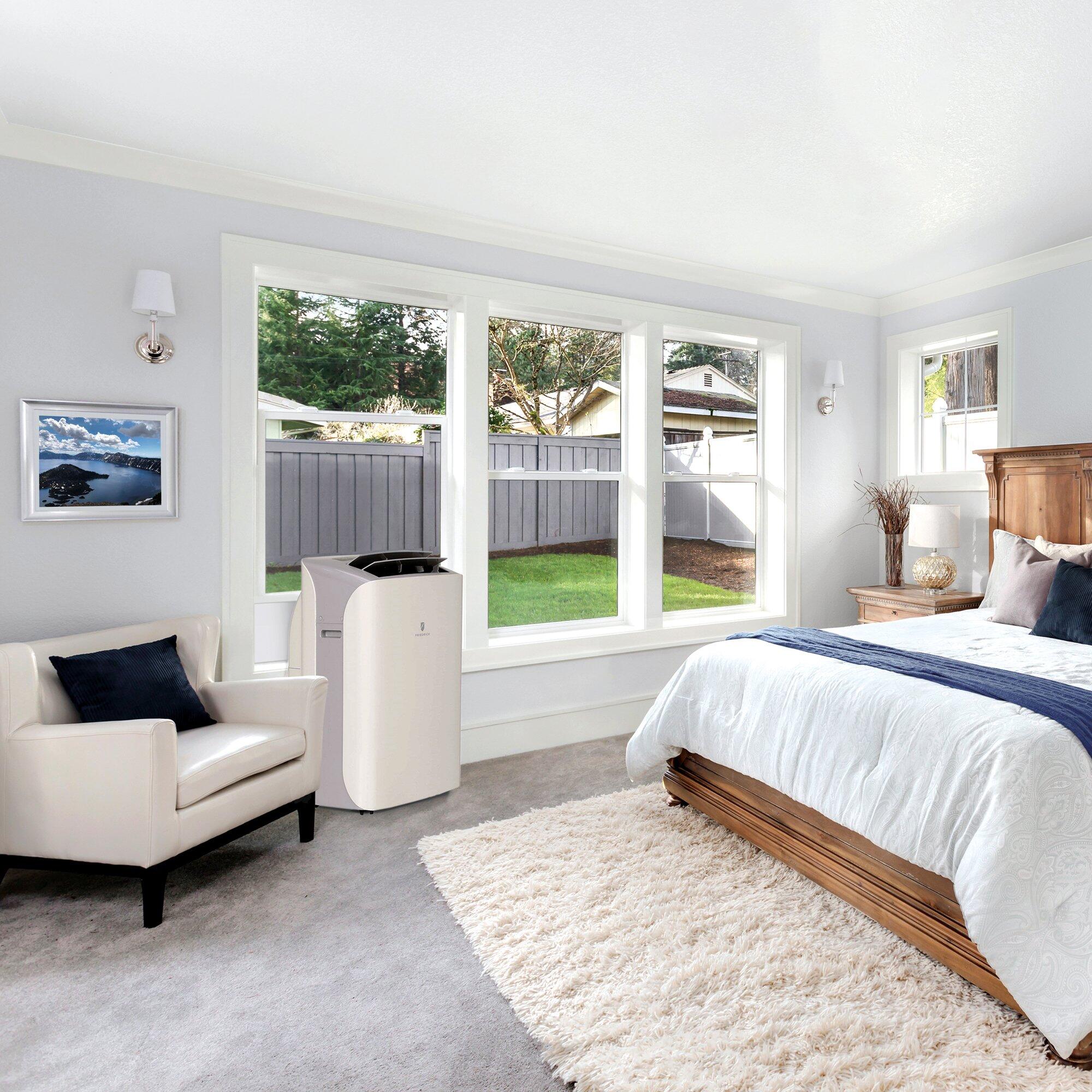 A: It efficiently cools and heats spaces up to 500 sq. ft., making it ideal for bedrooms, offices, and living areas.