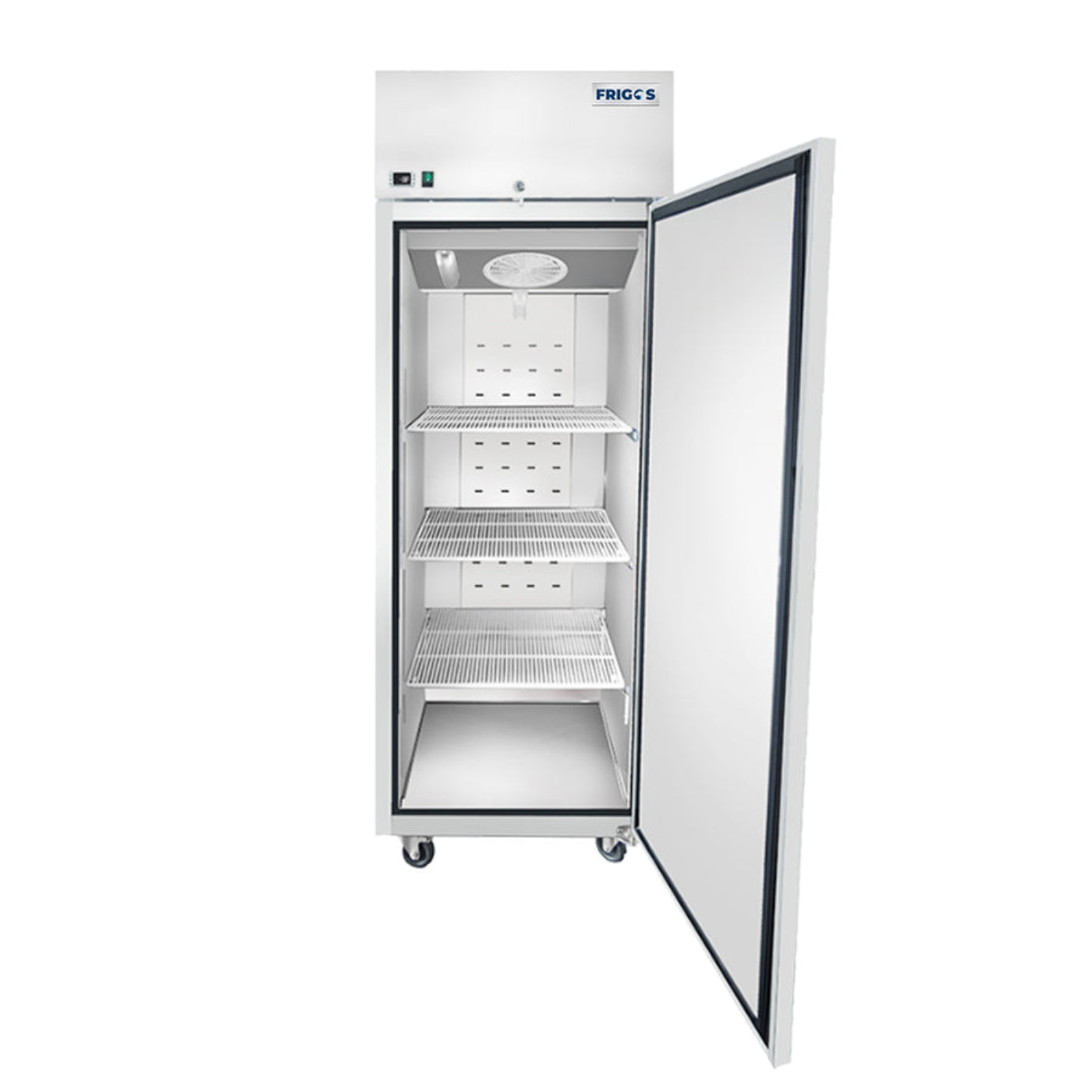 The Frigos FGA-TMF-1D-29 is a top-mounted solid door reach-in freezer with a 21.4 cu. ft. capacity, ideal for commercial kitchens. With its stainless steel exterior and interior, it offers both durability and style. The freezer features an energy-efficient R290 refrigerant and maintains temperatures between -8°F and 0°F, ensuring consistent cooling. An electronic temperature controller and LED interior lights enhance user convenience and visibility.