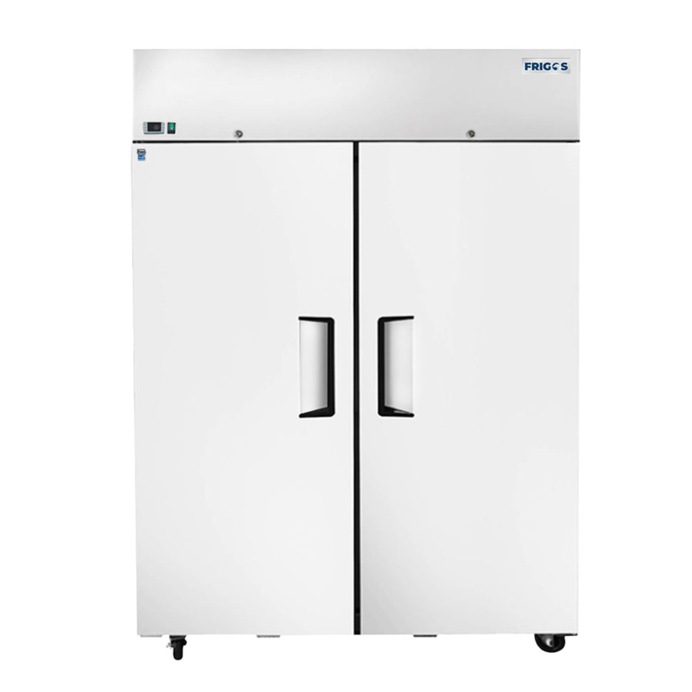 The Frigos FGA-TMR-2D-52 is a 43.2 cu. ft. refrigerator with top-mounted compressor and eco-friendly R290 refrigerant. Designed to maintain temperatures between 35°F and 38°F, it ensures optimal storage for perishable goods in commercial kitchens.