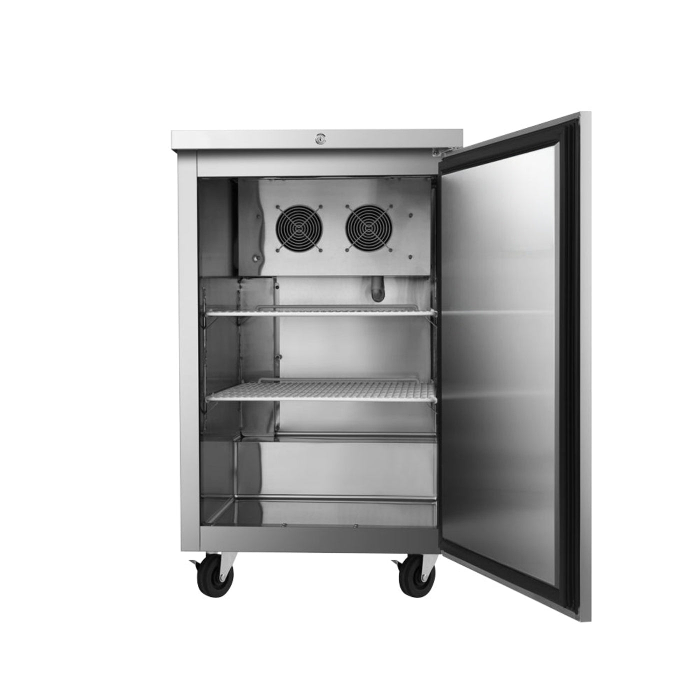 Equipped with a heavy-duty Embraco compressor and environmentally friendly R290 refrigerant, it offers reliable cooling. The slide-out compressor assembly makes maintenance easy, while recessed door handles, magnetic door gaskets, and a door lock ensure security and ease of use.