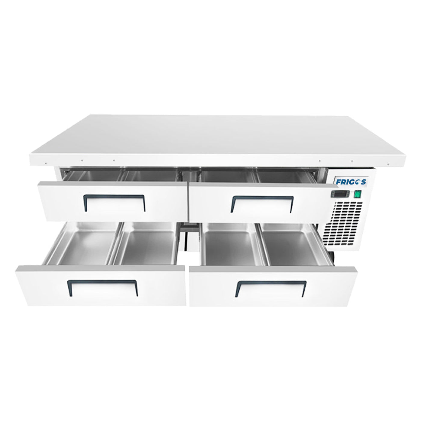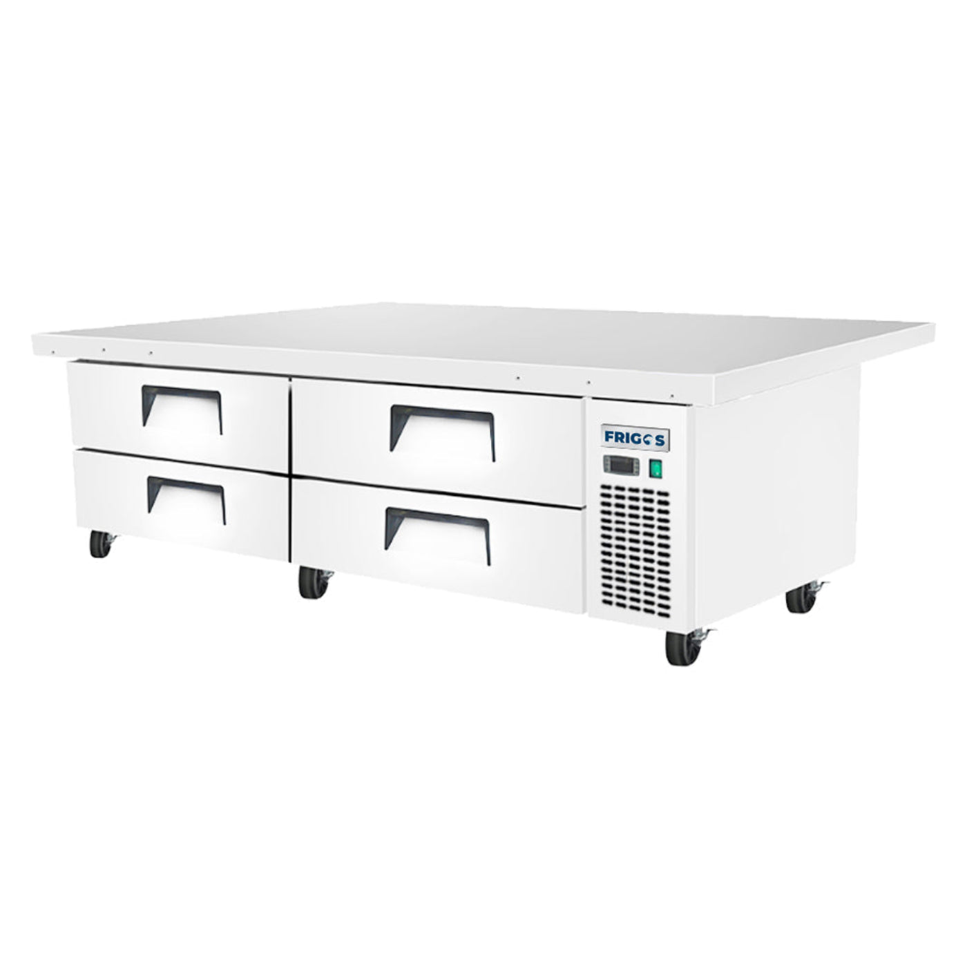 A: The Frigos FGA-CB-4DR-78 is a commercial-grade refrigerated chef base designed to provide efficient cold storage and additional workspace in kitchens with limited space. It features a 76-inch width with four drawers and an extended top, offering ample storage for refrigerated ingredients and extra workspace for countertop cooking equipment.