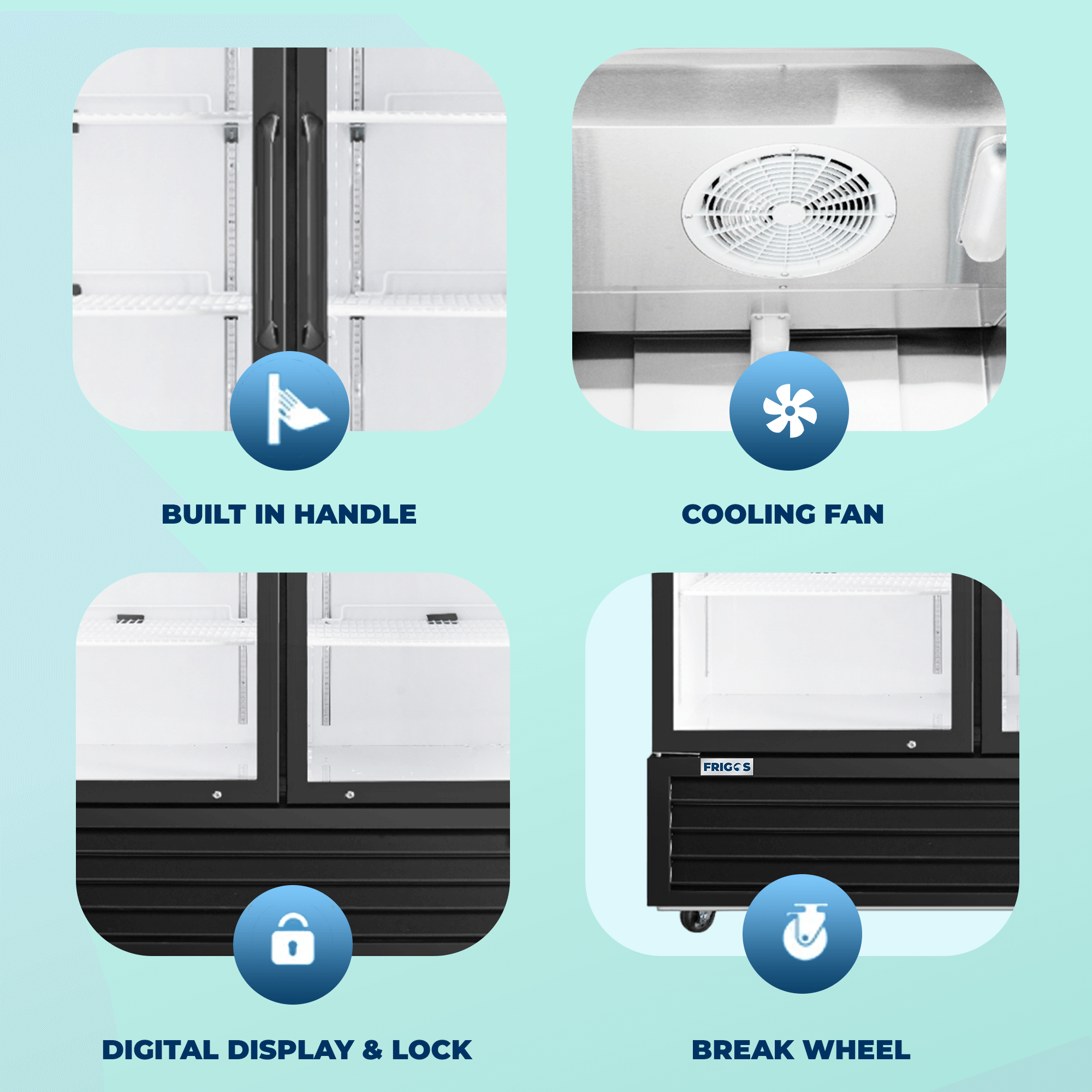 The Frigos FG-MR-2D-G is a commercial-grade, 54-inch wide, two-door glass merchandising refrigerator designed to provide efficient cooling and high-visibility display of products in retail and foodservice environments.