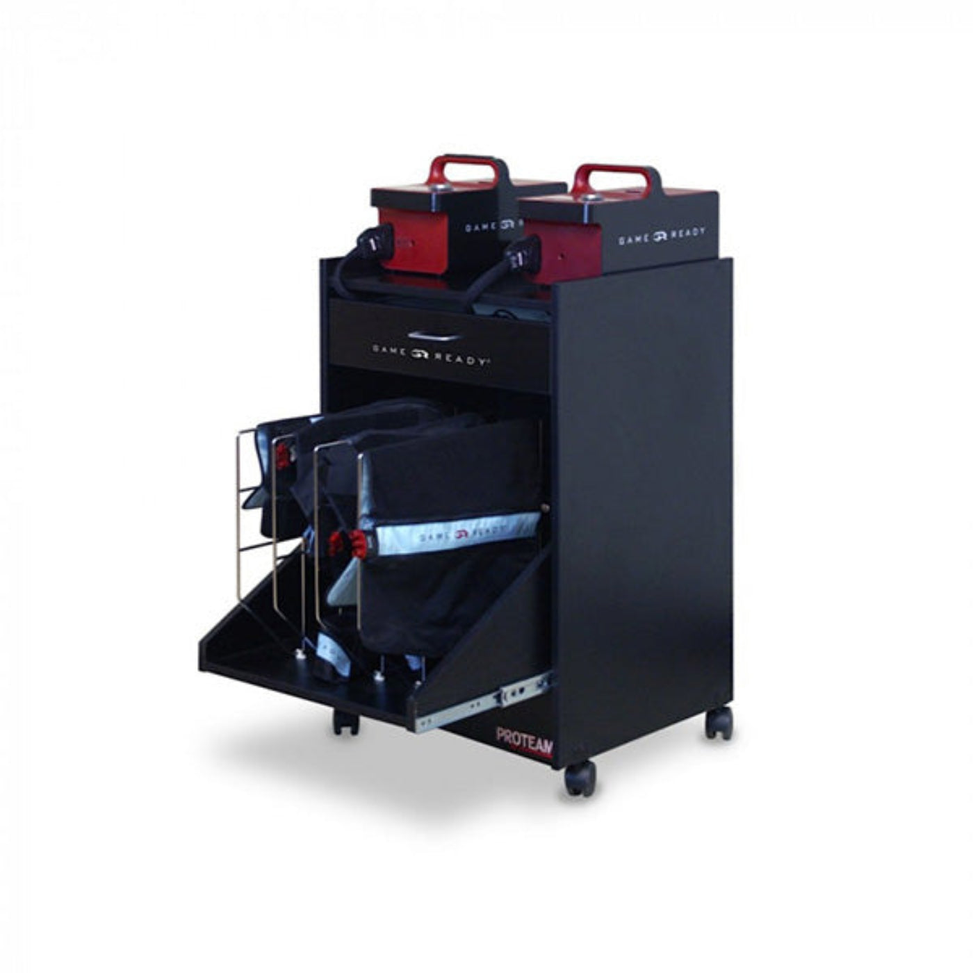 The Game Ready Mega Cart is the ideal solution for professionals managing multiple GRPro 2.1 Systems and wraps. Designed for convenience and efficiency, it provides easy access and maneuverability.