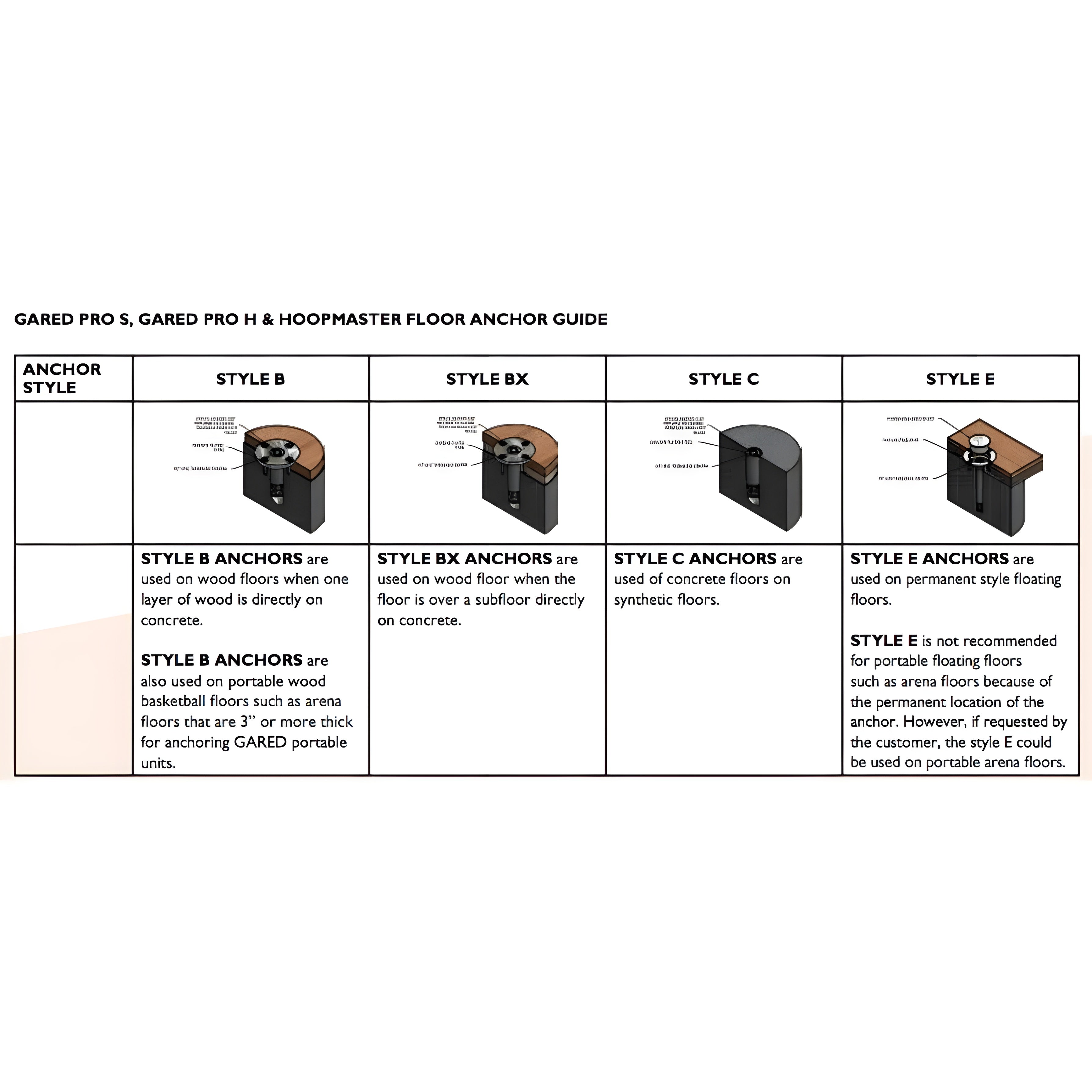 The GARED PRO S is the finest engineered competition portable in the world utilizing the GARED tension spring technology. The maintenance-free tension spring mechanism is designed for balanced and effortless lifting/lowering of the unit and is concealed inside the base for safety and appearance. A superbly designed t-shape extension arm made of fully welded, heavy wall rectangular tubing is patterned after our original GARED Pro H , which is universally considered the most structurally stable competition portable on the market. The t-shape extension arm and heavy duty uprights eliminate the need for unsightly bridge supports, giving the fans a clear view of the court. Available in 8’ and 10’ 8” boom extensions for all levels of play and adjustable to 8’, 9’, and 10’ heights. The GARED Pro S comes equipped with an official size (42” x 72”) shatter proof glass backboard, our original PRO-MOLD backboard padding, and a positive lock breakaway goal. The base is fully padded on three sides with vinyl covered 2” thick high density polyurethane foam. The front upright is similarly padded to a height of 7’ with 5” thick foam. Meets NCAA, NAIA, NFHS, and NBA main court specifications and is approved by FIBA for high level international competition. The boom pad and floor anchoring system are included with the unit. Shot clock supports are sold separately. 10 year Limited Warranty on all parts, Lifetime Limited Warranty on backboard included with the unit, 5 year Limited Warranty on PRO-MOLD pads and 4 year on a breakaway goal.