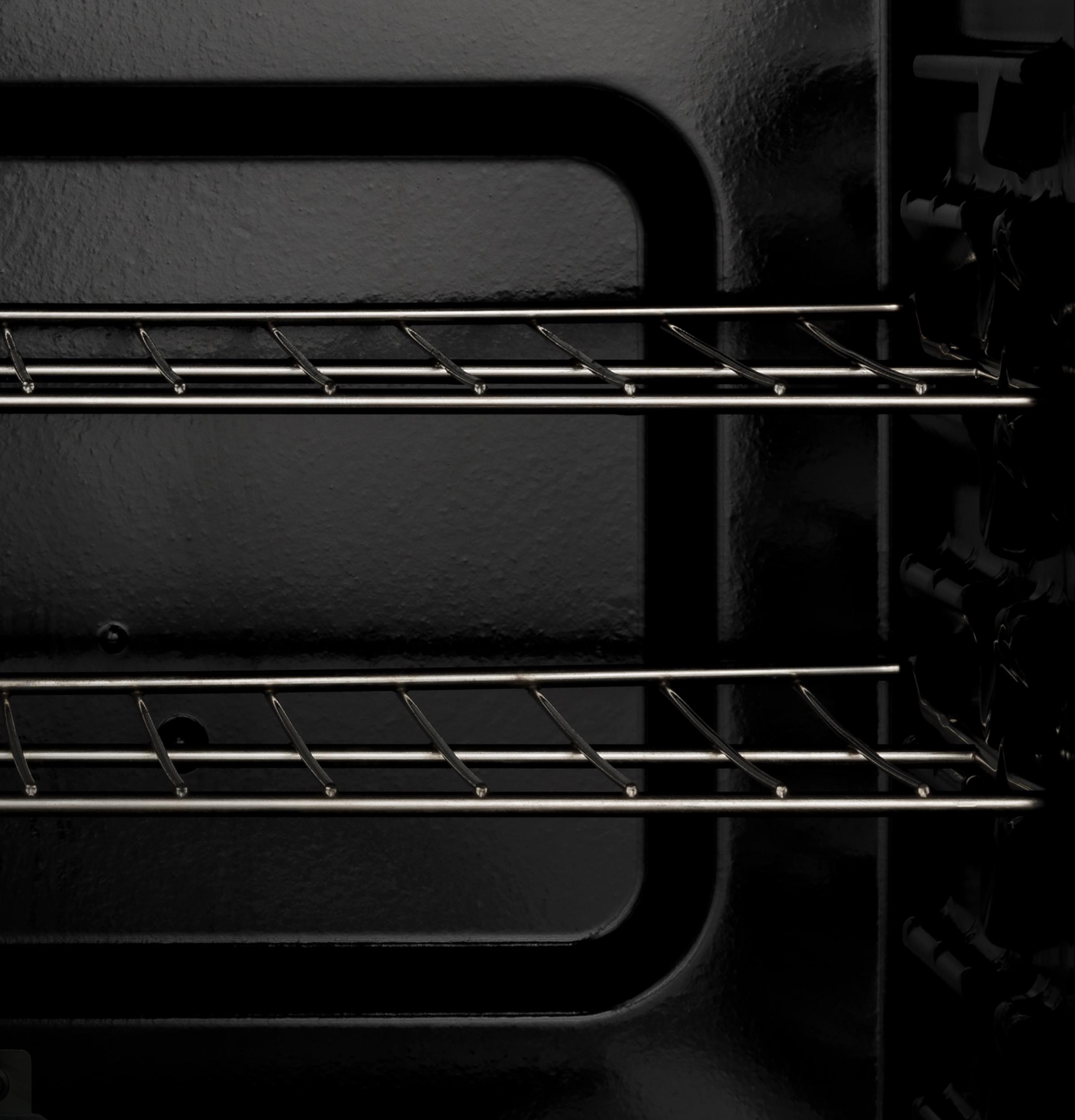 This electric range with nickel racks provides a durable design that handles heavy baking dishes with ease.