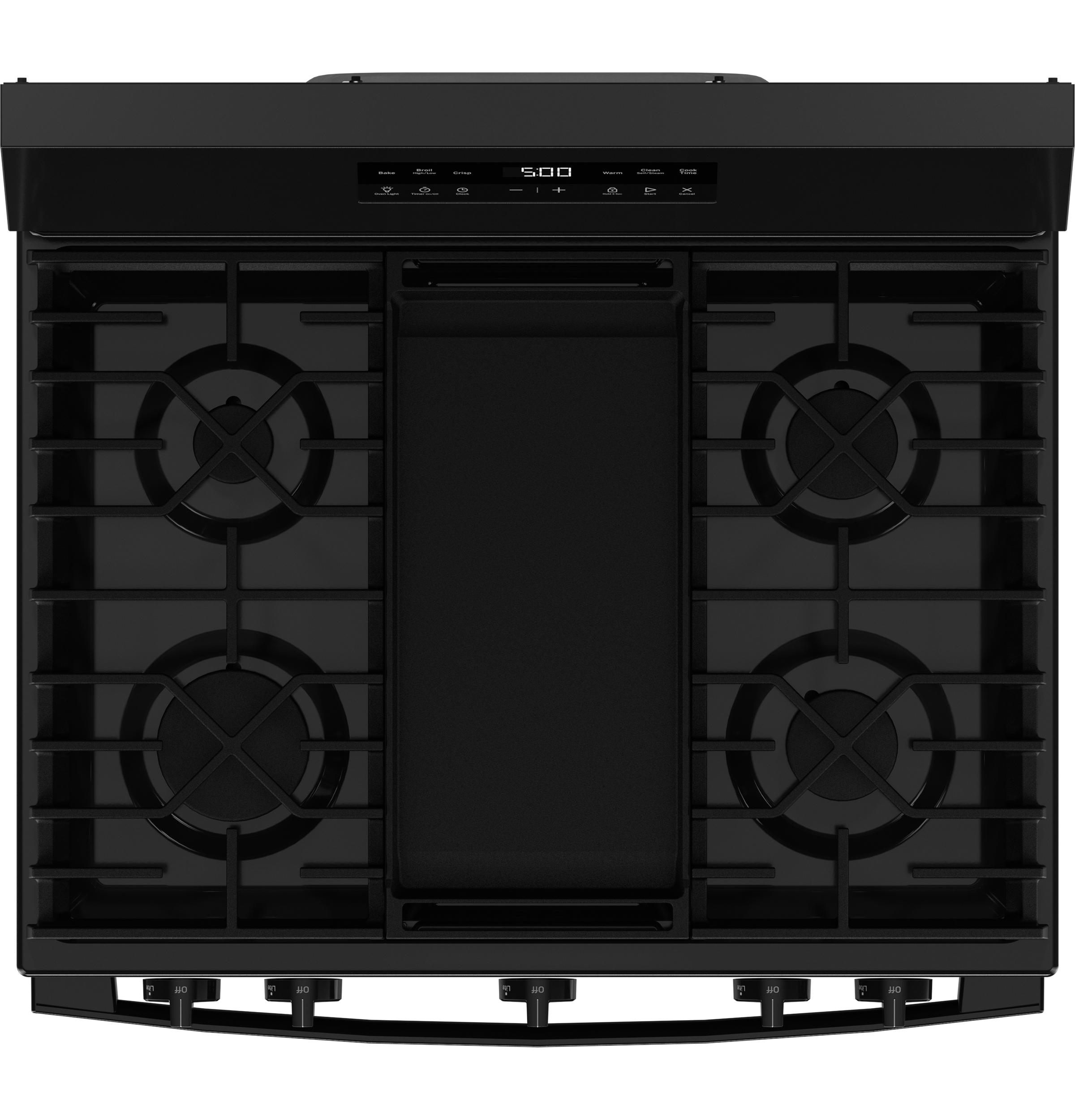 A: This 30" free-standing gas range features a 5-burner cooktop, a spacious oven for versatile cooking, and an easy-to-clean design for everyday convenience.