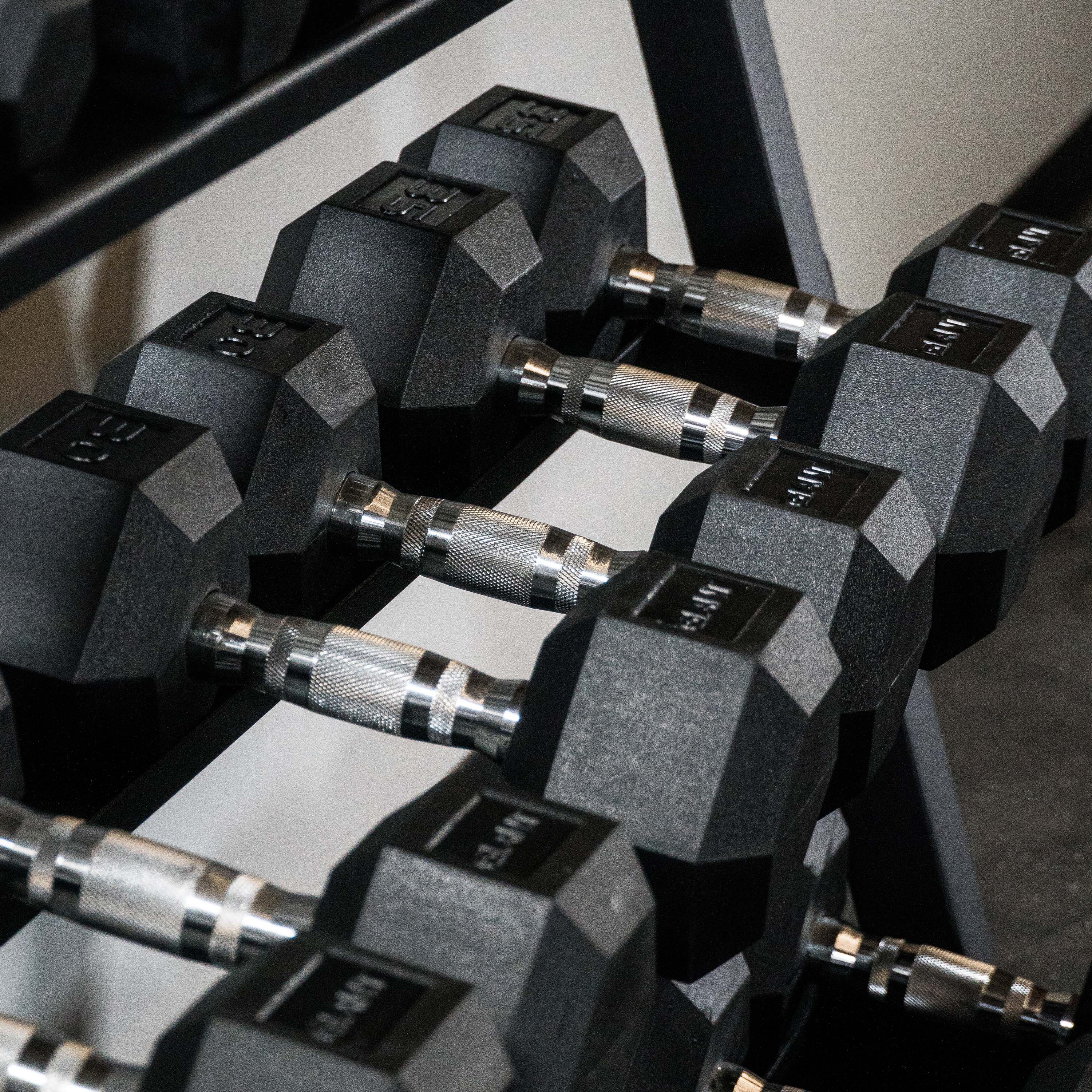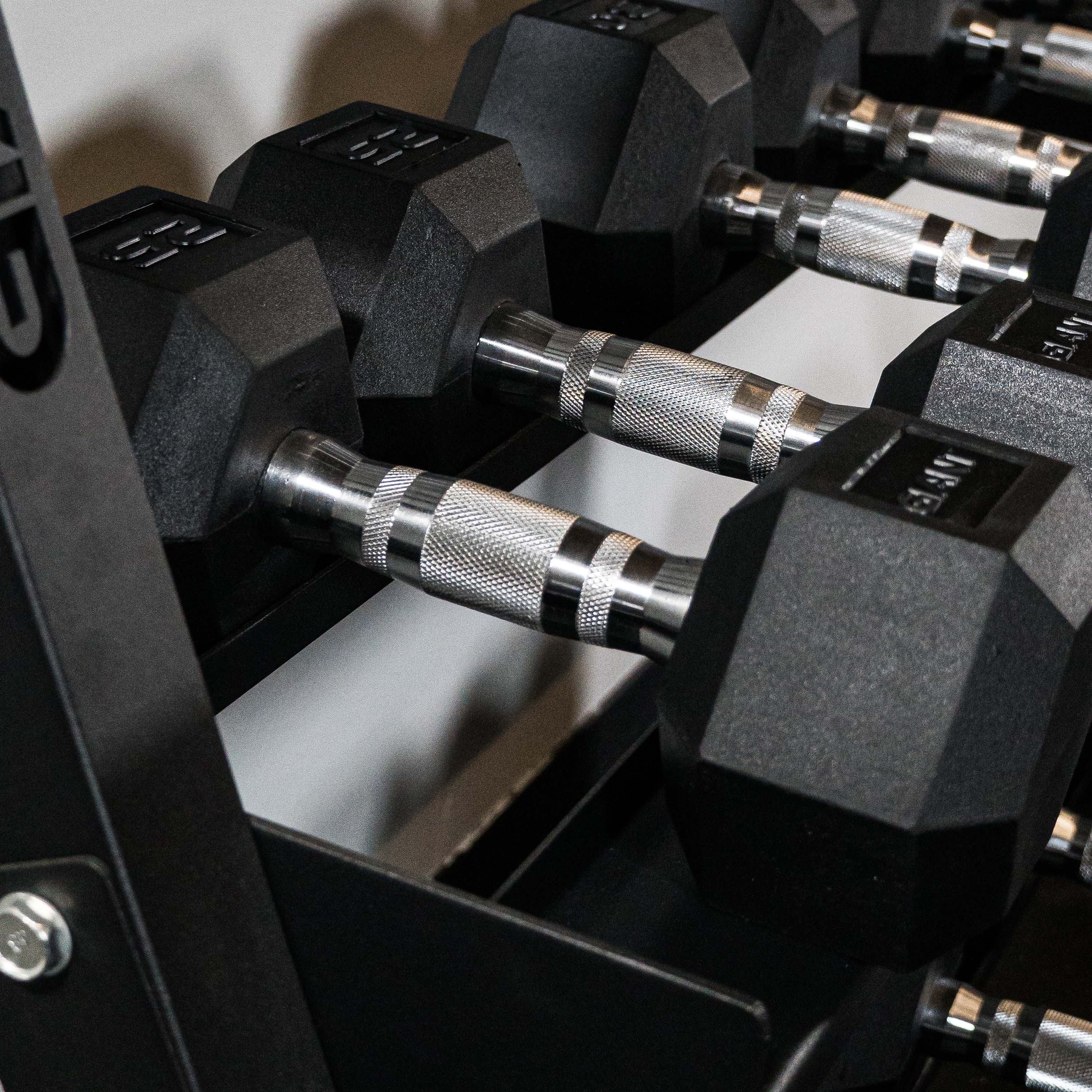 Giant Lifting dumbbell sets are available in sizes 5lb-100lb and sold in pairs. Hex Rubber Dumbbells are an essential element of any strength training regimen. Low-odor, the hex-style dumbbells are one of our best-selling products.