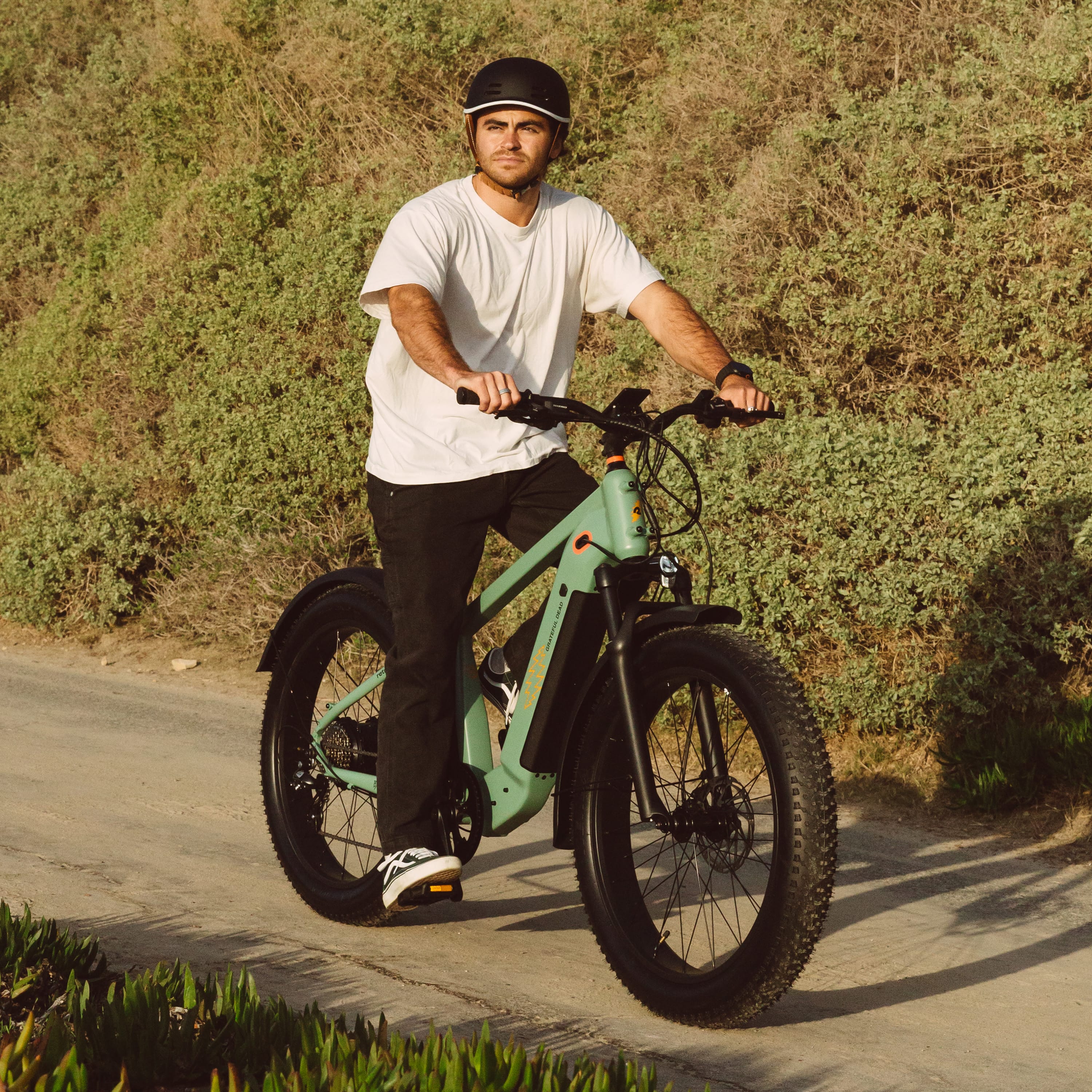 Built for Adventure: 26” x 4” puncture-resistant fat tires and front suspension provide control and comfort on any terrain.