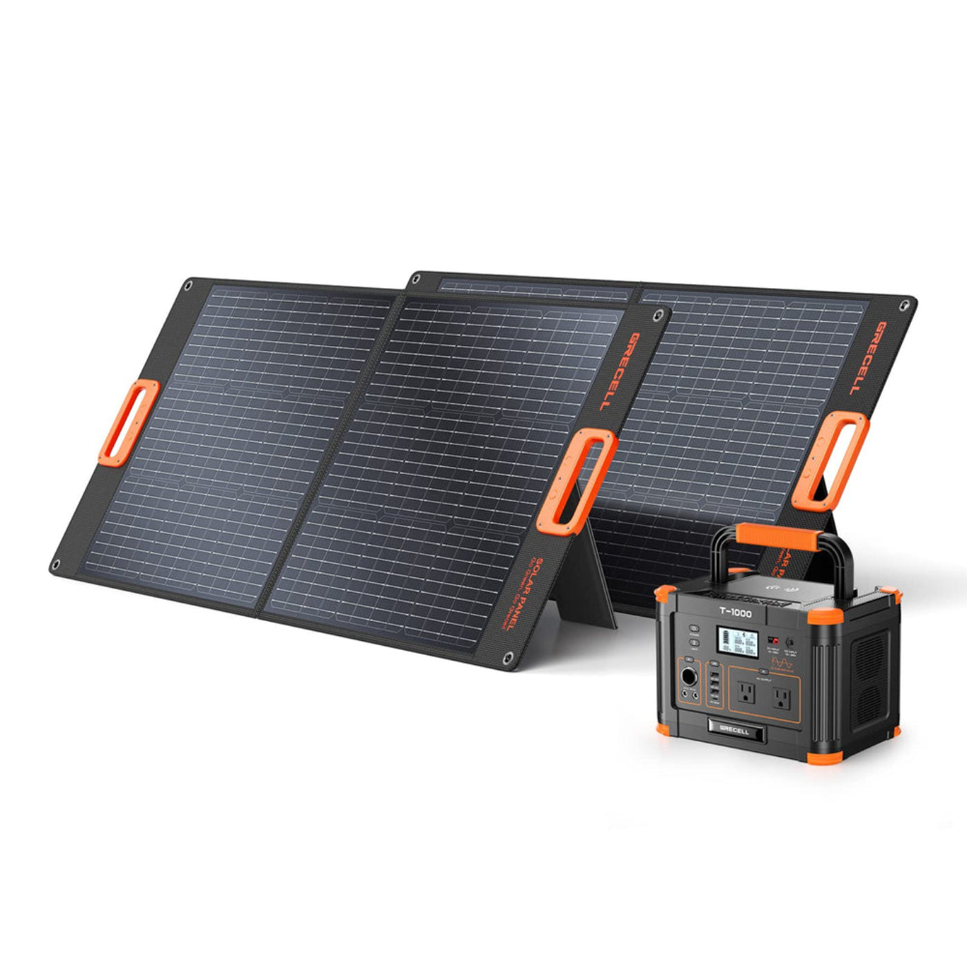 GRECELL 1000W Portable Power Station With 2x 100W/200W/200W Pro Solar Panels, 999Wh Backup Lithium Battery, Pure Sine Wave AC Outlet, 60W PD Quick Charge Solar Generator Set for Outdoor Emergency Camping Travel