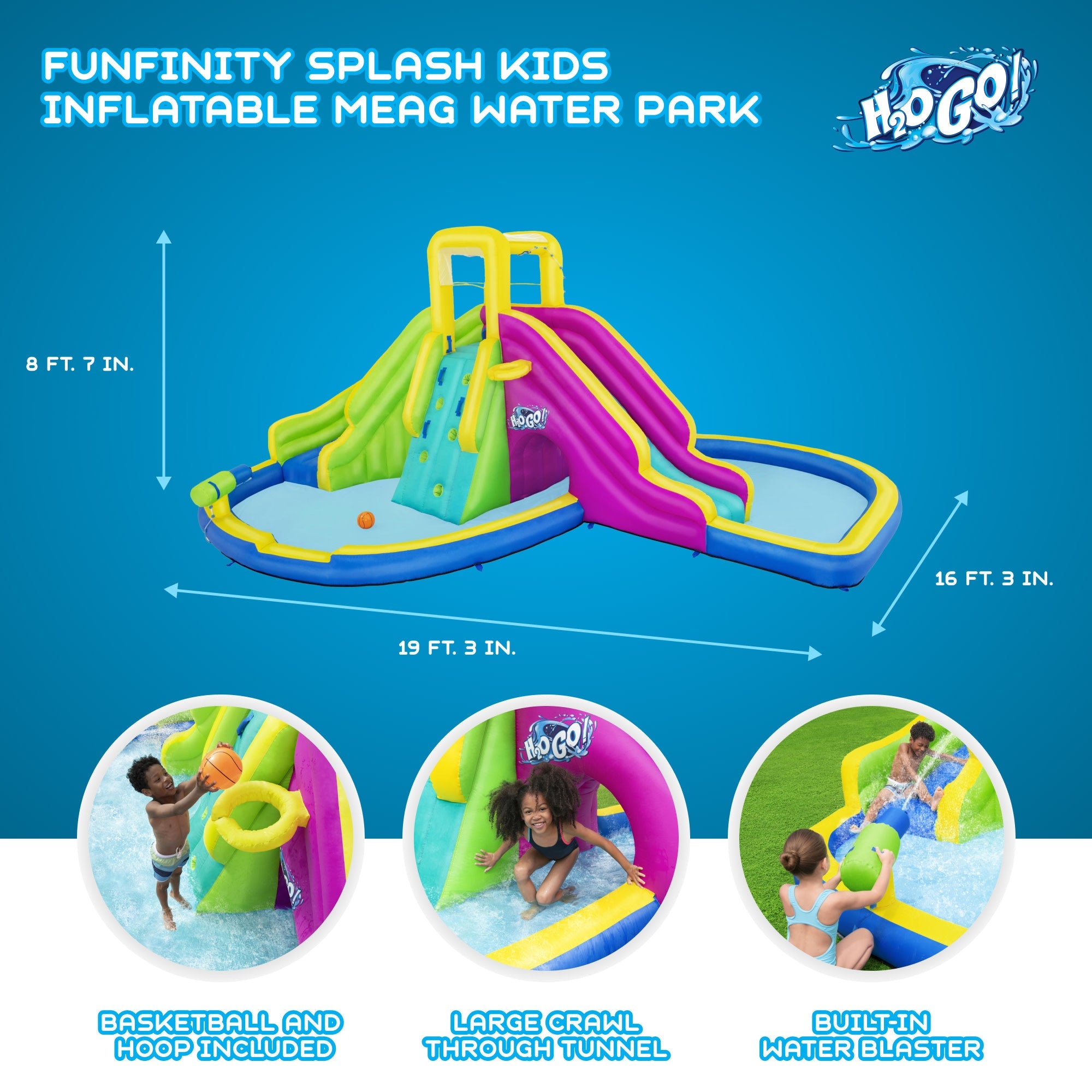 - Included basketball and hoop provide even more outdoor water park excitement