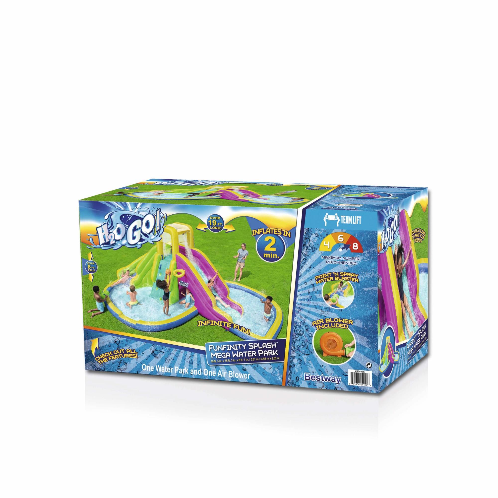 A: The H2OGO Funfinity is a large inflatable water park with multiple slides, a splash pool, and exciting water play areas. It includes a blower pump for quick inflation.