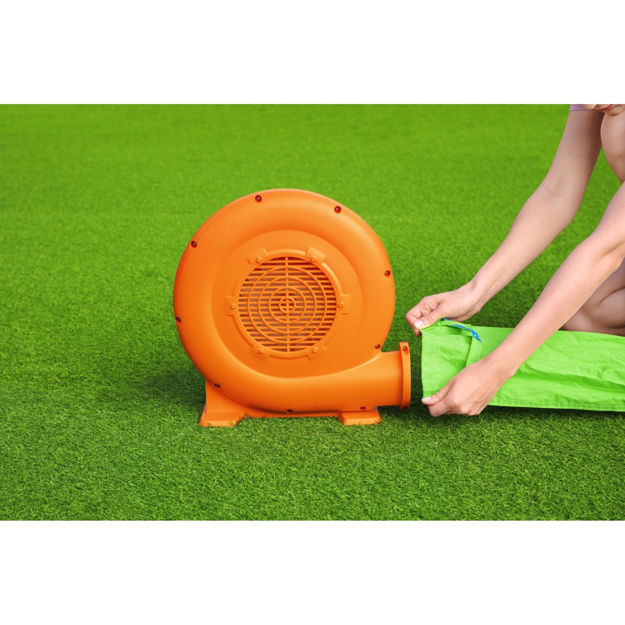 - Hassle-free setup includes 11 ground stakes and air blower that inflates in less than 2 minutes