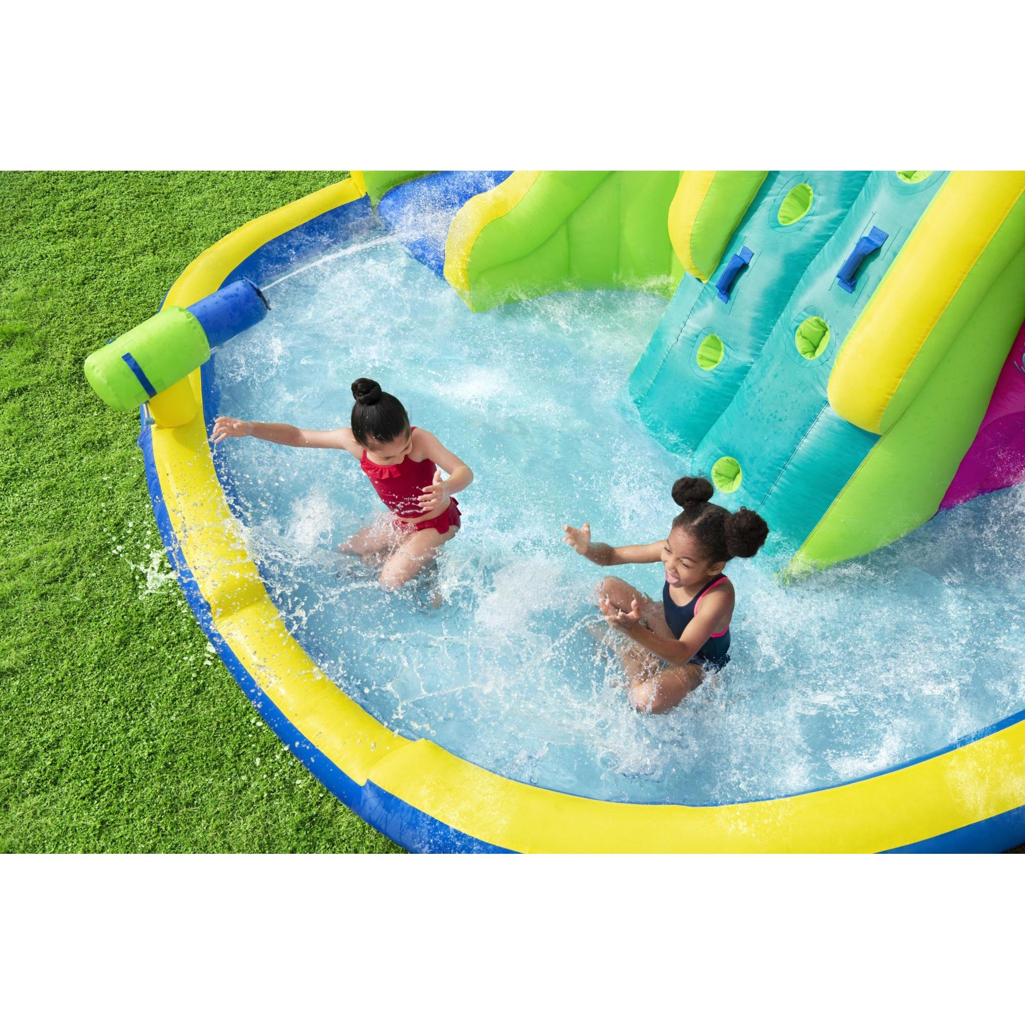 - Built-in sprayers are above the slides for double the splashing and water-time fun