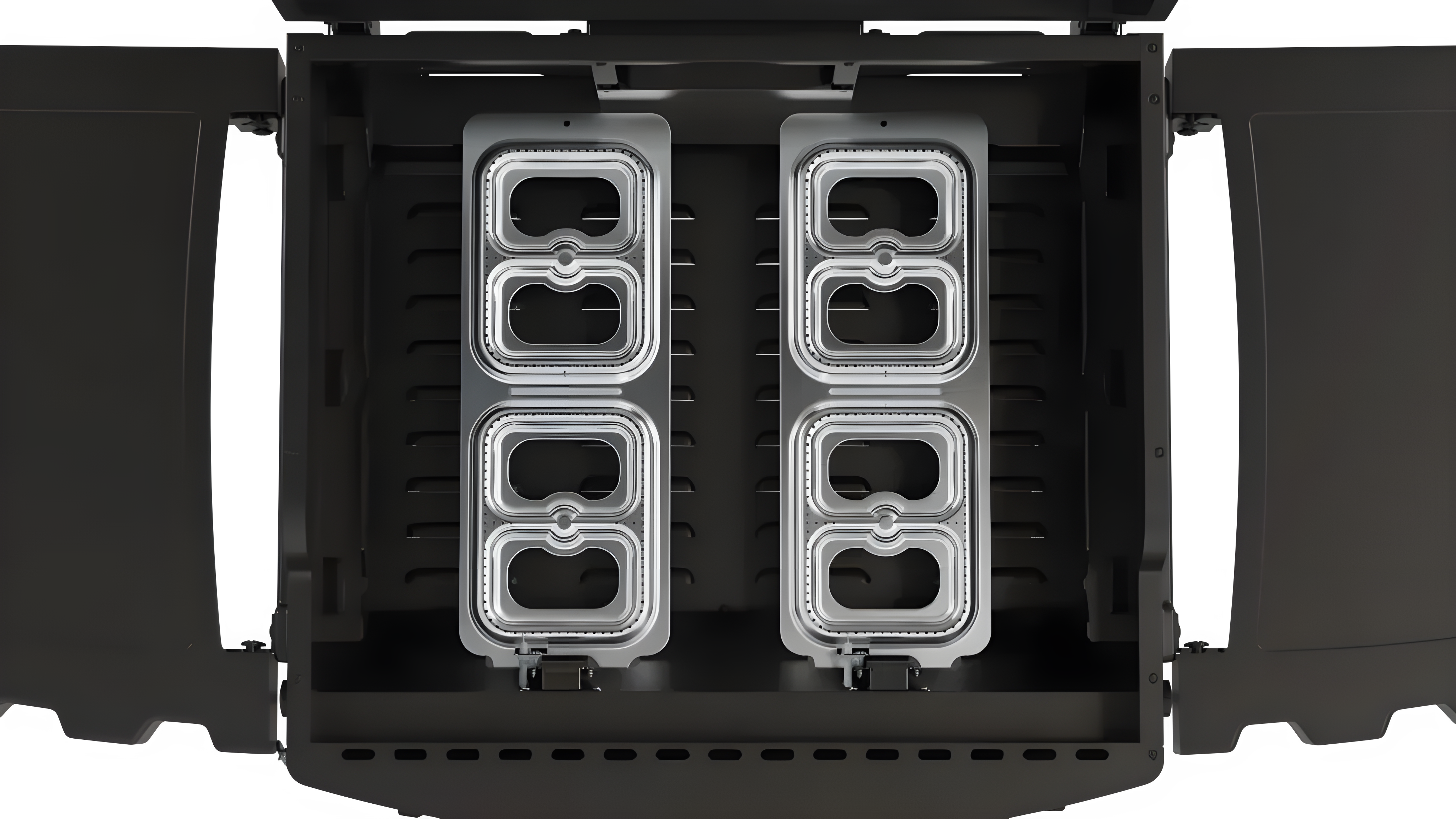 A: The griddle provides ample space for cooking multiple dishes simultaneously, perfect for preparing breakfast, lunch, and dinner outdoors.