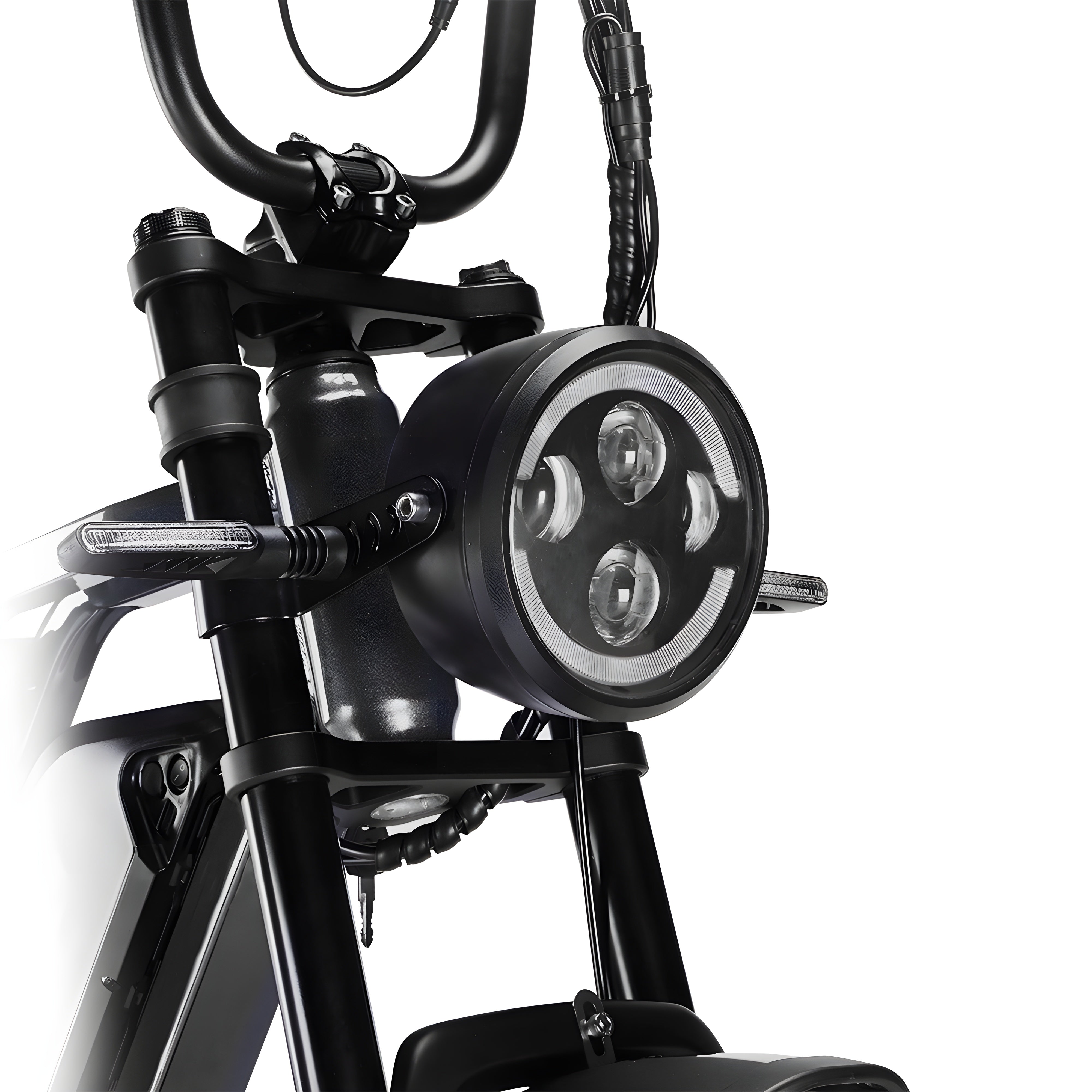 The G60 Pro combines the ruggedness of a fat tire bike with the comfort and style of a moped, making it perfect for both off-road exploration and relaxed street cruising.