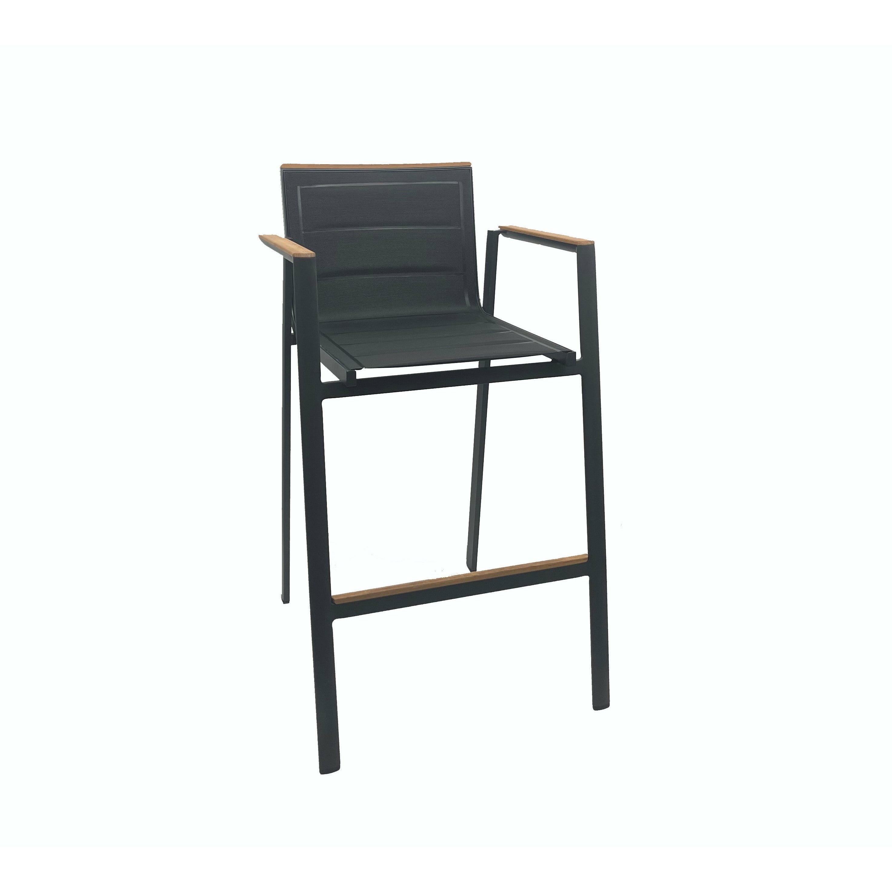 The HiGold Geneva collection bar chair offers simple elegance. By combining a padded sling, aluminum frame, and teak accents, this collection is durable, stylish, and accessible. Geneva’s sleek, minimalist designs feature stunning attention to detail with teak inlays in table legs, and contoured teak arm caps. Geneva tables are truly innovative, featuring unique patterns.
