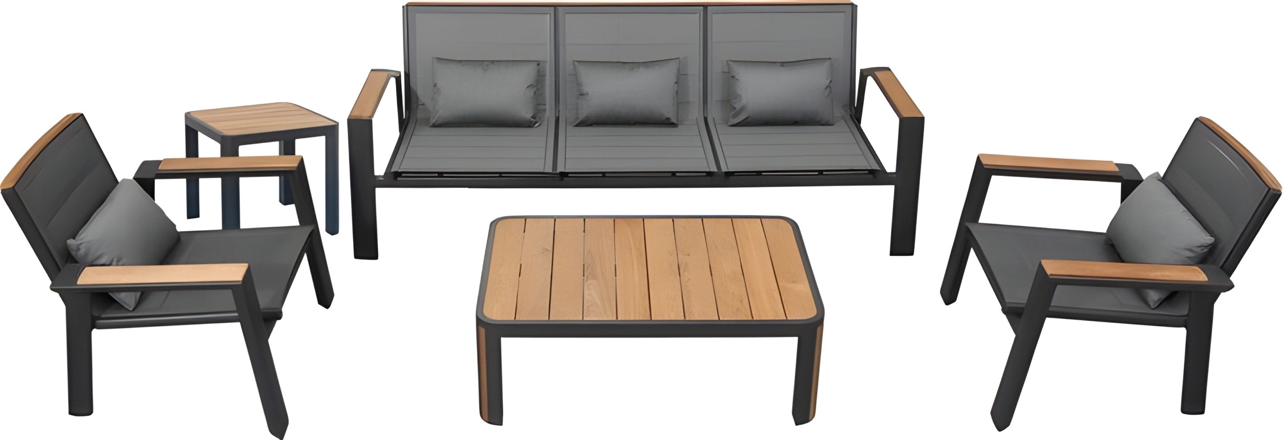 The Higold Geneva Sofa Seating Set offers simple elegance. By combining a padded sling, aluminum frame, and teak accents, this collection is durable, stylish, and accessible. Geneva’s sleek, minimalist designs feature stunning attention to detail with teak inlays in table legs, and contoured teak arm caps. Geneva tables are truly innovative, featuring unique patterns.