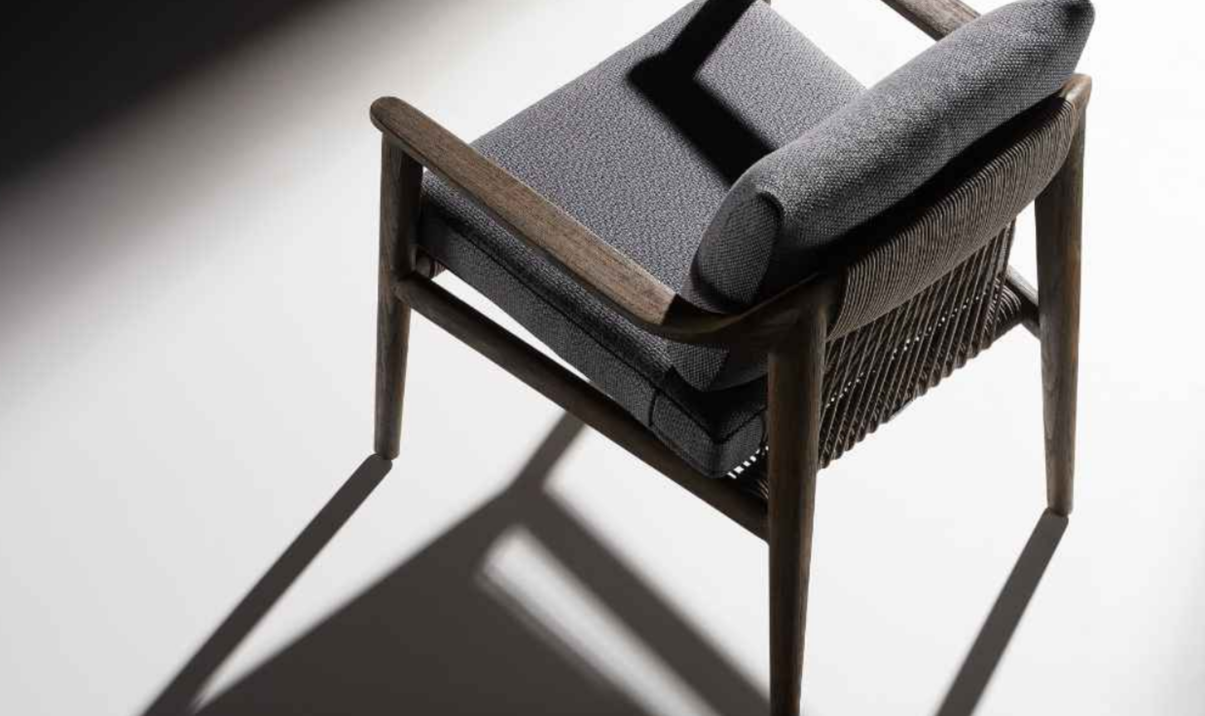 An exciting blast inspriation from the Sixties. This collection is a clear reference to the 60s world where harmony and calm were essential. Convenience and comfort, stability, lightness and adaptability are the main features of this outdoor furniture. This is LEO collection, characterised by the decisive sign of the armrests, which represent its distinctive feature such as the essentiality of the lines. The curved armrest has a strong character and gives a sense of lightness. The backrest with woven rope brings nature and richness to this collection.