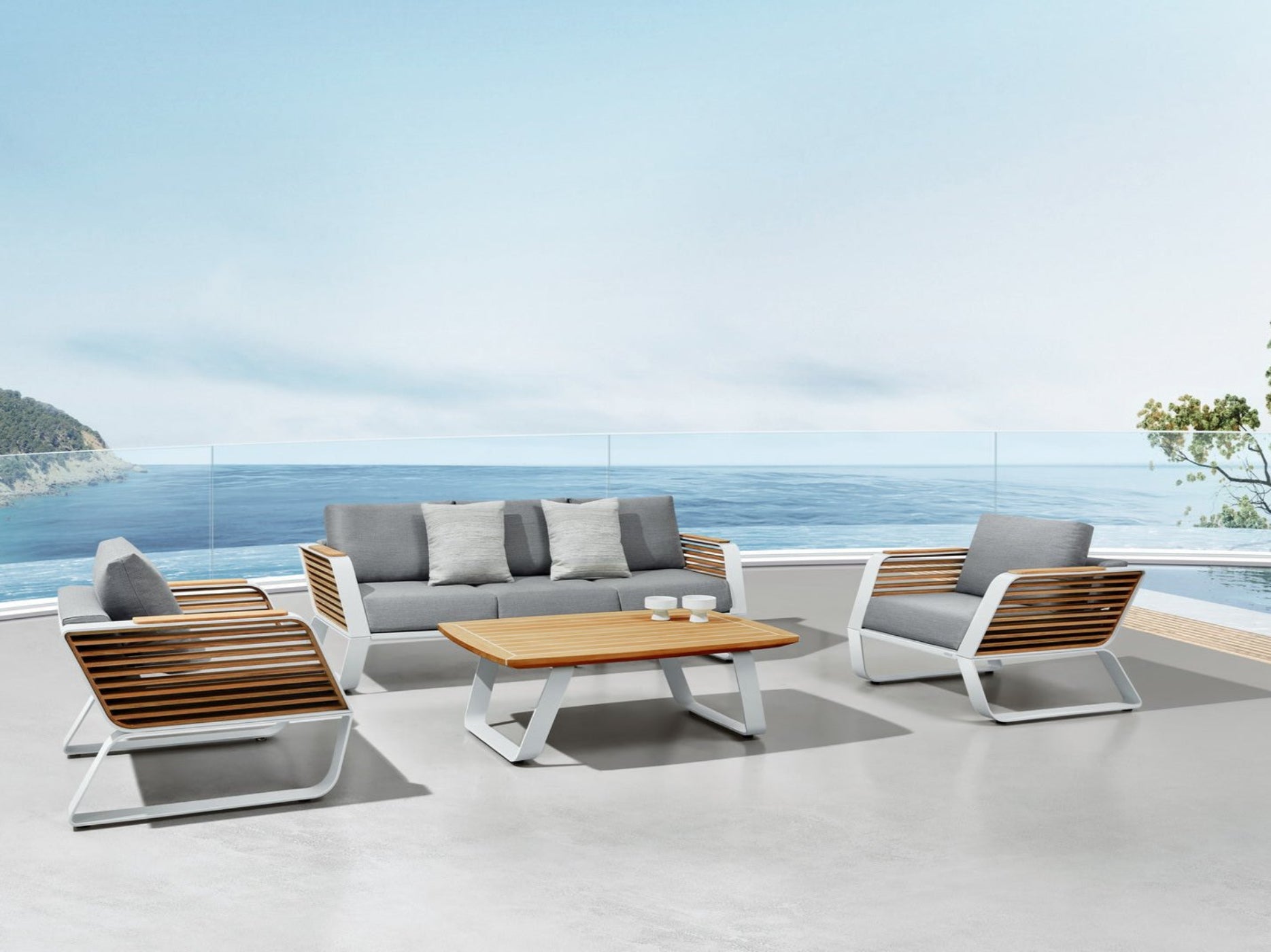 The HiGold Wing collection offers a new and elegant lounge chair for all to enjoy. Taking inspiration from modern urban structures and sleek aeronautica design, this collection provides an aluminum structure enriched by geometric and essential lines that recall the world of architecture. Featuring the Dura-Firm cushions from HiGOLD and timeless teak slats in the seat arm structure, the Wing collections offers a refreshing seating or dining experience.