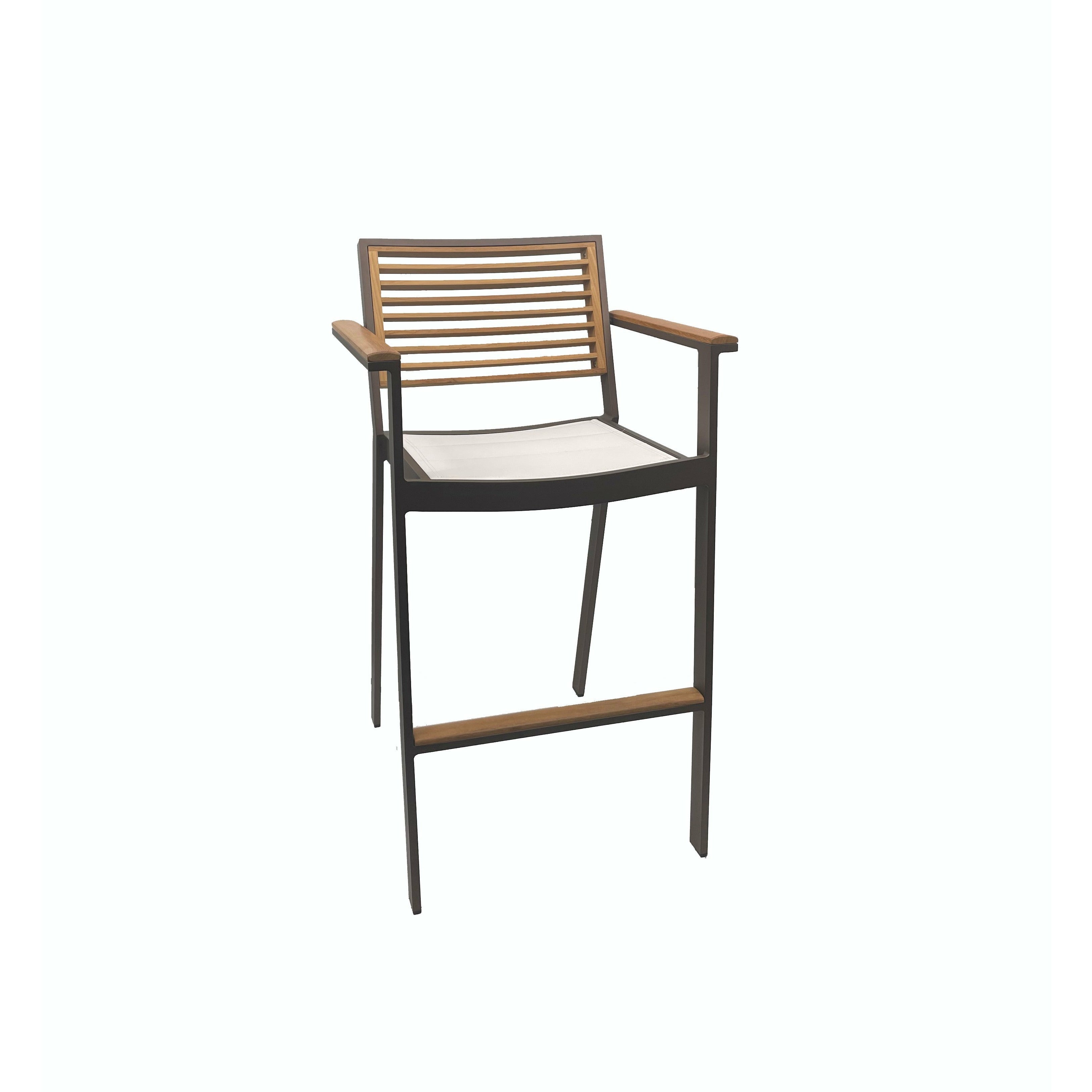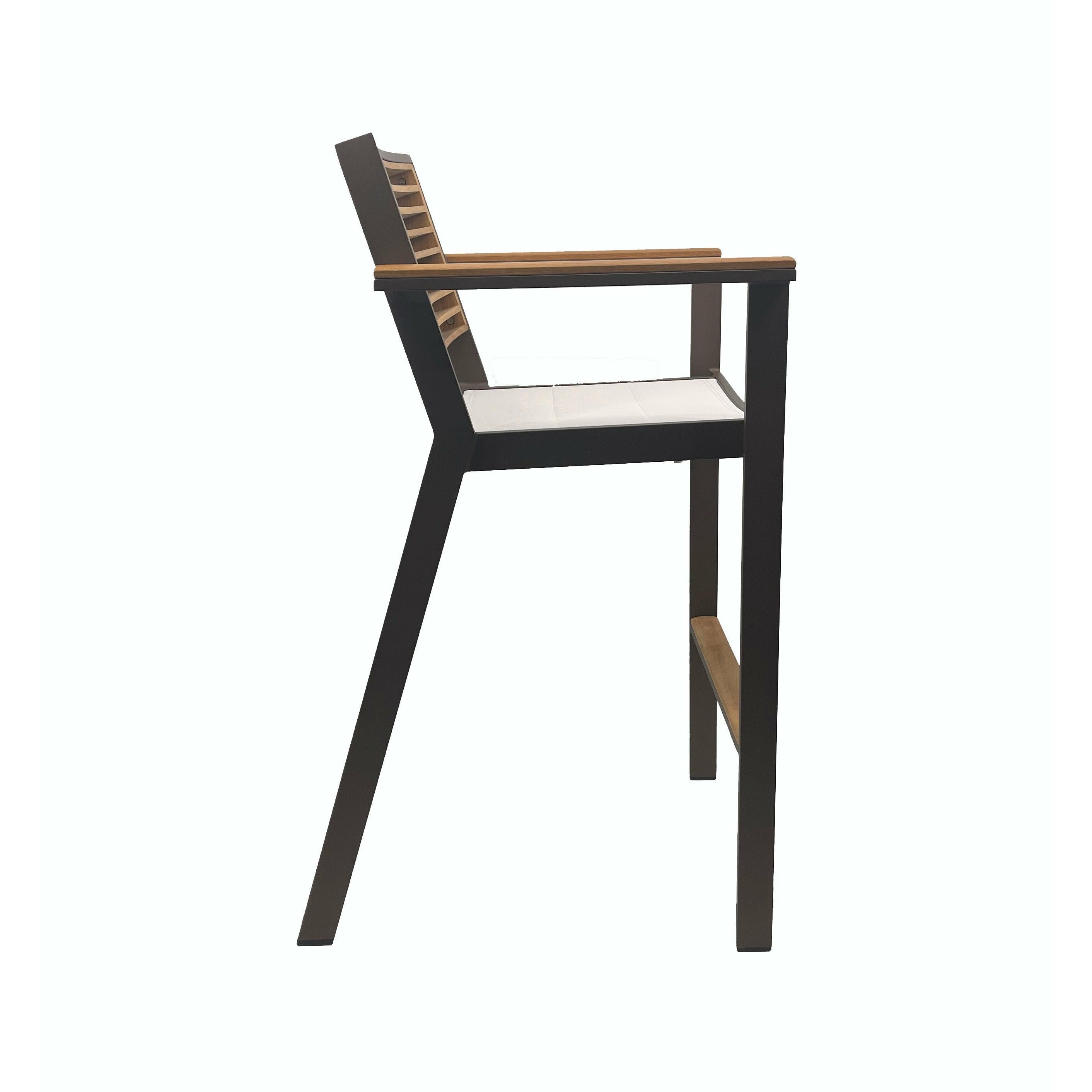The HiGold York collection bar chair features clean lines and a smooth combination of teak and aluminum. Seating pieces feature convenient flip-up side tables, maximizing space and efficiency. York’s cutting edge style doesn’t sacrifice comfort – premium foam cushions ensure a soft seat perfect for hours of lounging.