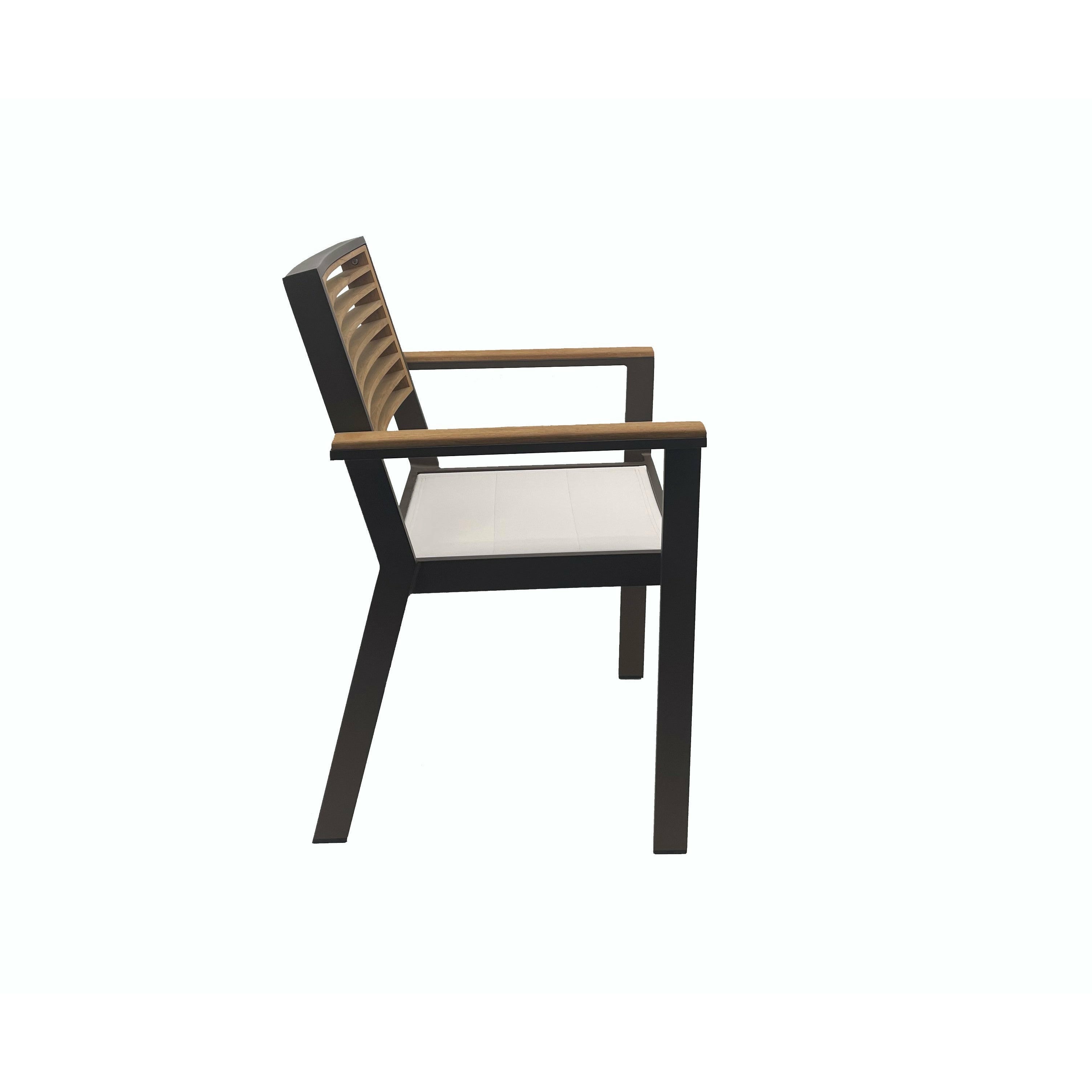 The HiGold York collection dining arm chair features clean lines and a smooth combination of teak and aluminum. Seating pieces feature convenient flip-up side tables, maximizing space and efficiency. York’s cutting edge style doesn’t sacrifice comfort – premium foam cushions ensure a soft seat perfect for hours of lounging.