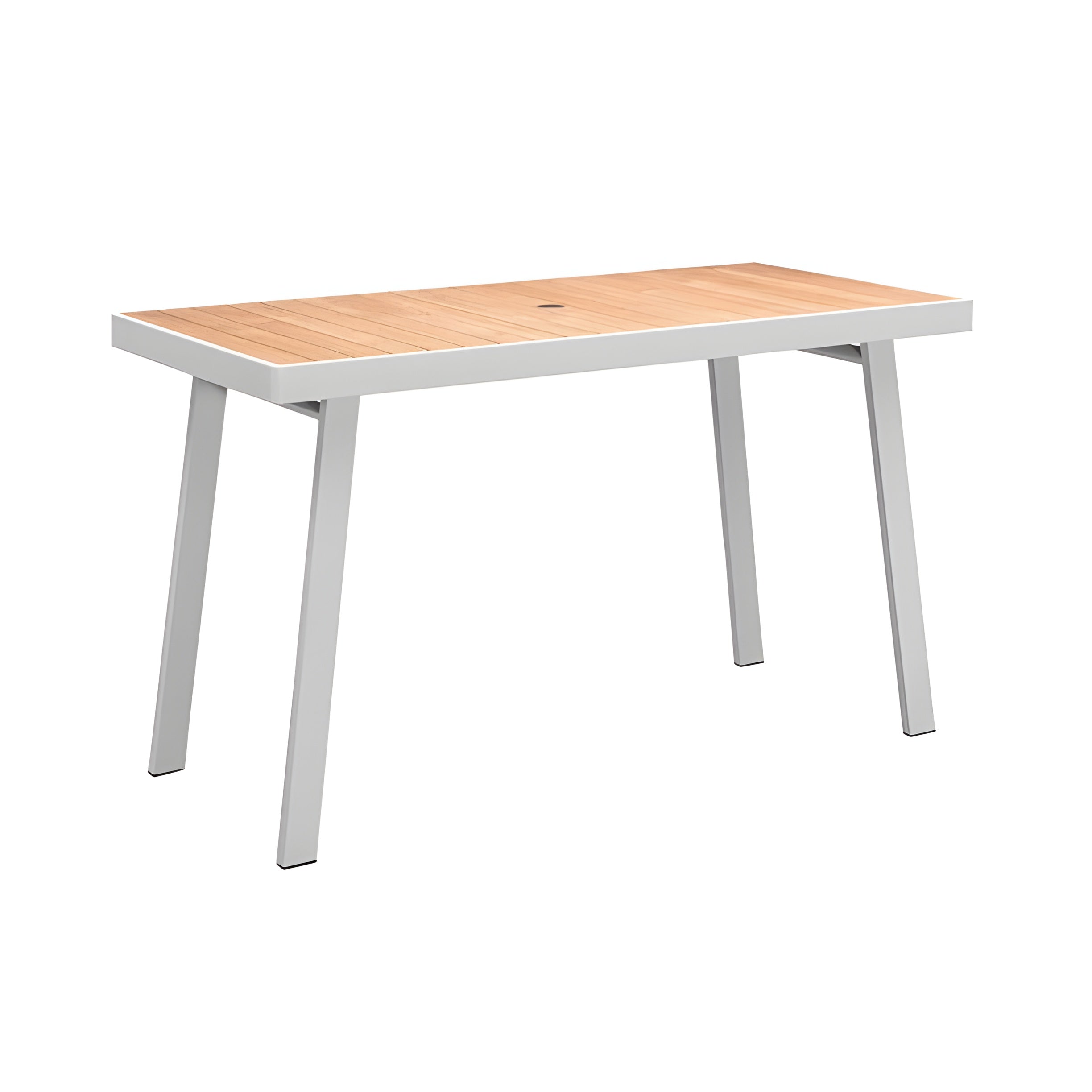 A: A sleek and durable outdoor bar table with a modern design, ideal for outdoor dining or casual gatherings.