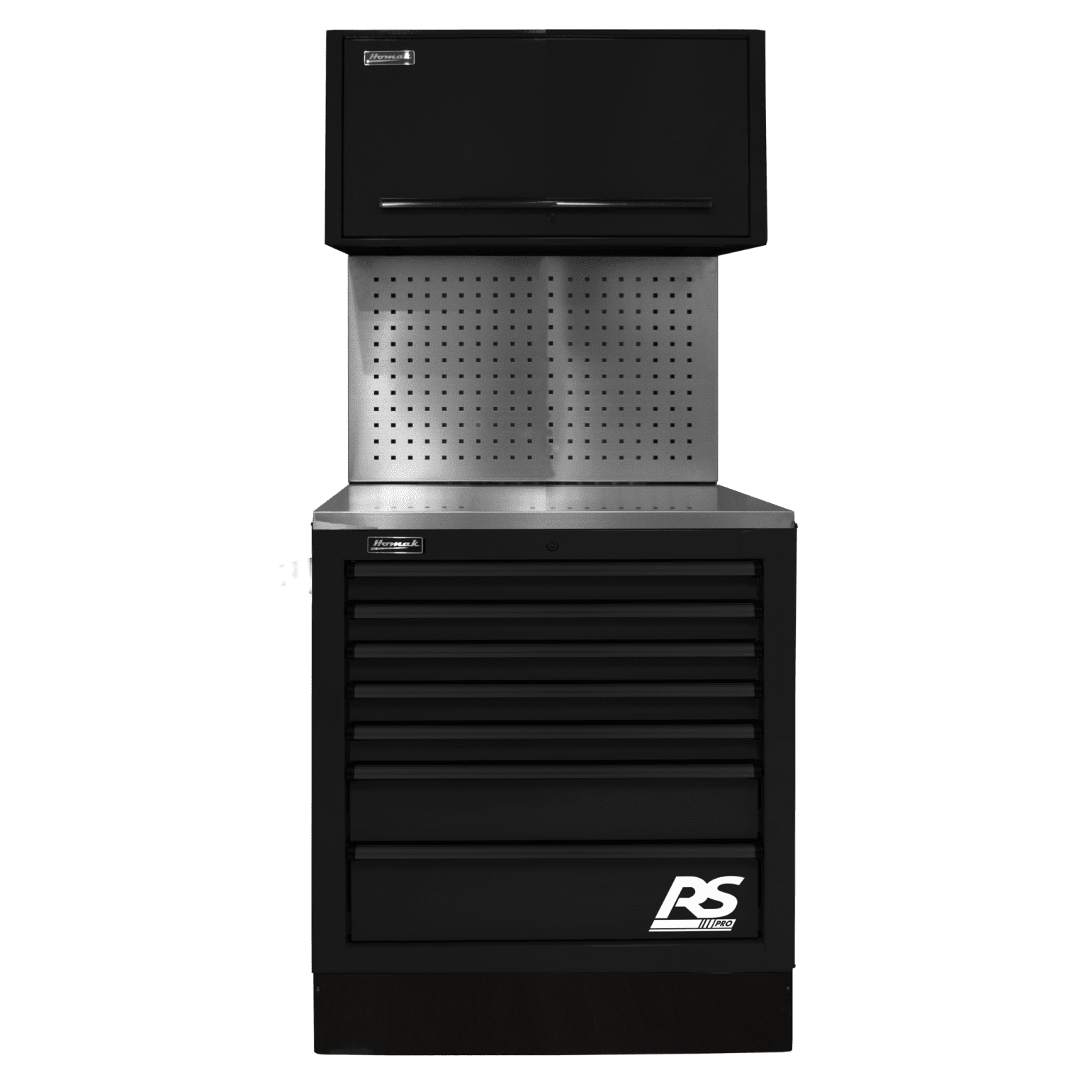 The Homak 36 CTS Set with a solid/toolboard back splash is a comprehensive addition to your garage or shop, offering multifunctional utility. This set comprises 7 spacious drawers and an overhead canopy, facilitating flexible organization of your tools and equipment. The drawers, equipped with PVC foam liners, safeguard the surfaces from scratches and stains, ensuring the protection of your tools. Additionally, the stainless steel top provides a durable work surface, enabling you to perform various tasks with ease and durability within your workspace.
