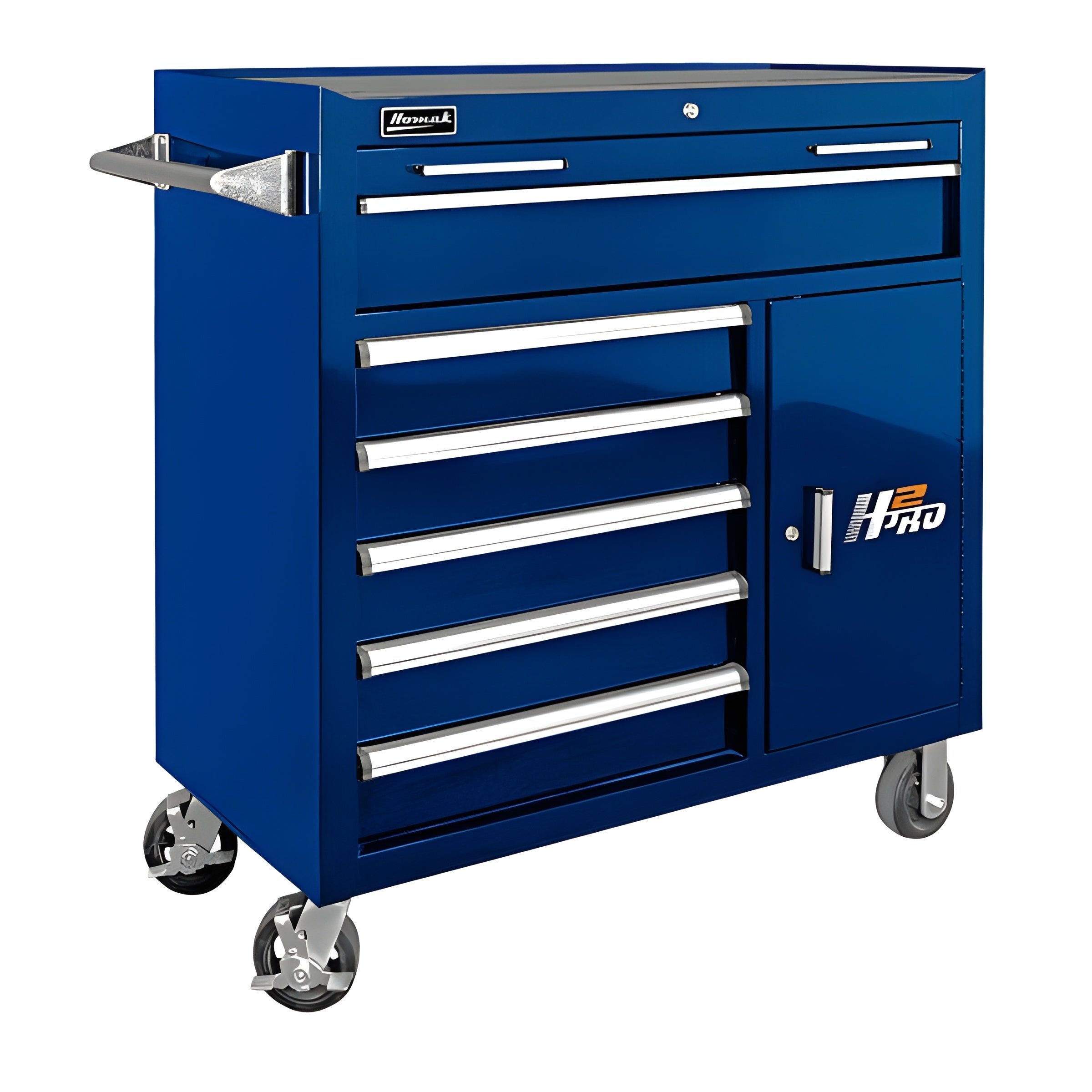 The Homak 41" H2PRO Roller Cabinet in Black is meticulously designed with six drawers and two compartment drawers, offering ample space for storage and organization of your tools and equipment. Its HMC tubular locking system ensures improved safety and security for your stored items. Furthermore, the roller bearing casters contribute to enhanced mobility, allowing for easy movement and maneuverability of the cabinet.
