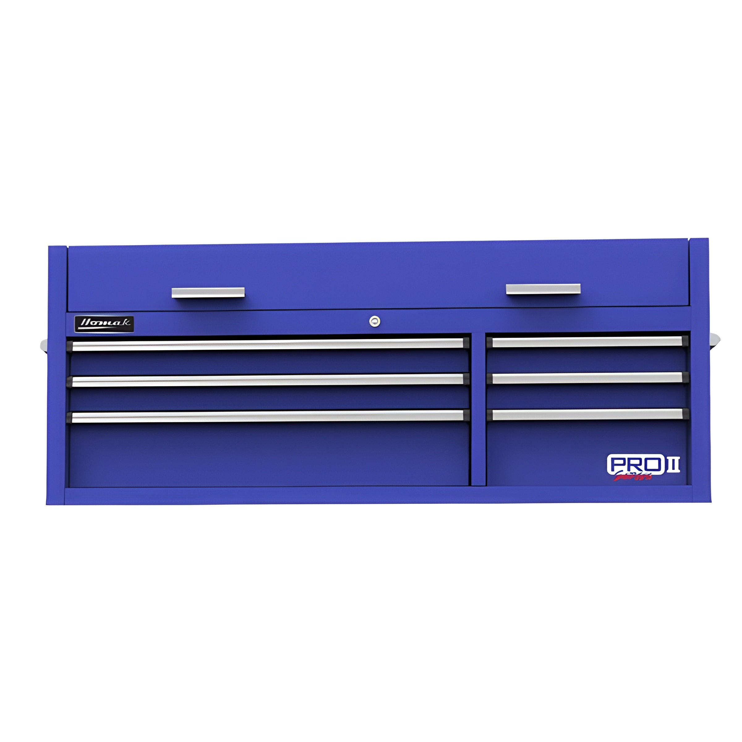 A: The Homak 54” Pro II Series 6 Drawer Top Chest is 54 inches wide, offering a spacious top chest for organizing a variety of tools and equipment.