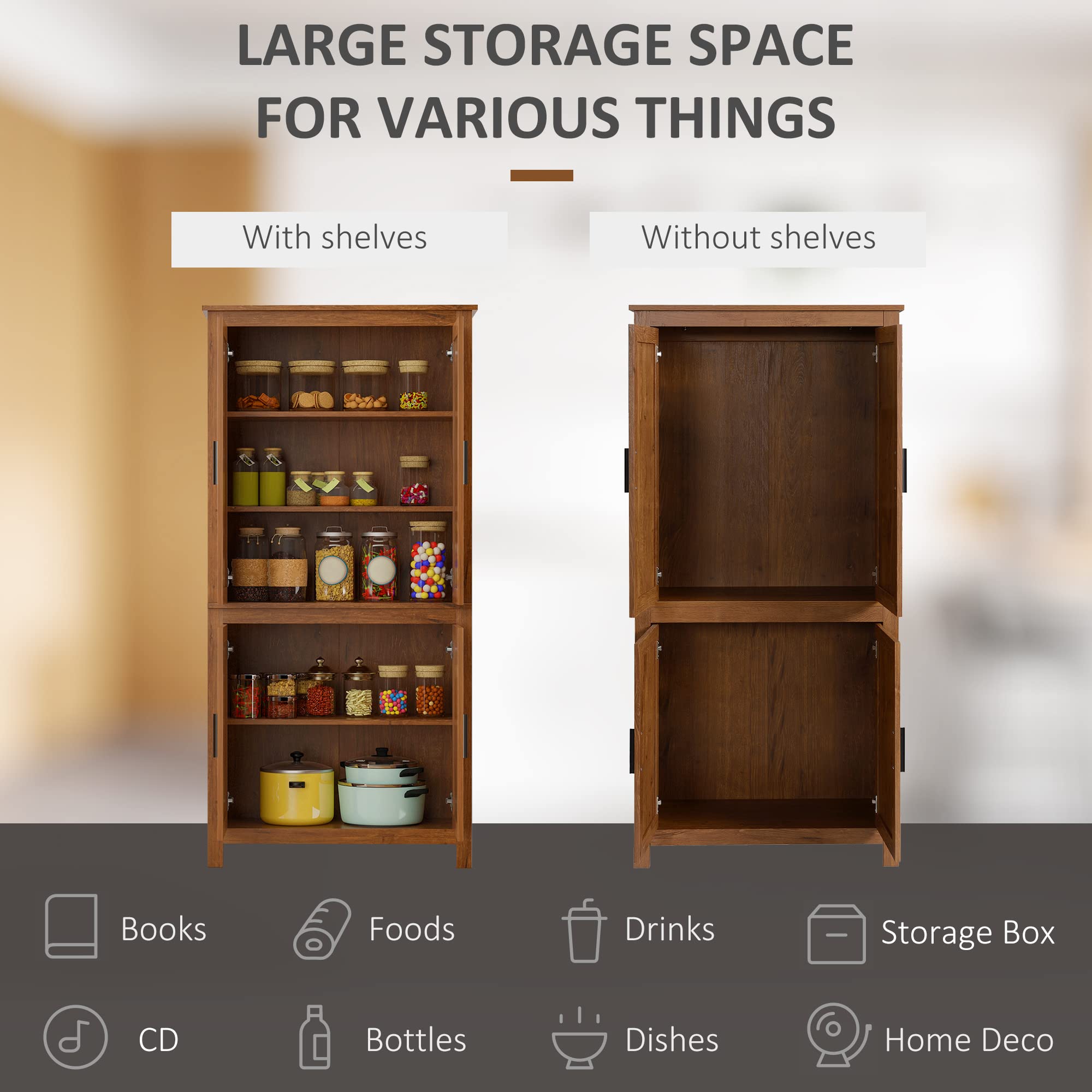 Need some more storage options in the kitchen? This HOMCOM kitchen pantry can help bring your kitchen from cluttered to organized in no time. It features a clean-lined design with rustic color, bringing an updated contemporary touch to your home aesthetic. In contrast, its two cabinets and 5-tier shelves offer up effortless storage for all your odds and ends. Spend more time cooking and entertaining with this HOMCOM storage pantry cabinet.