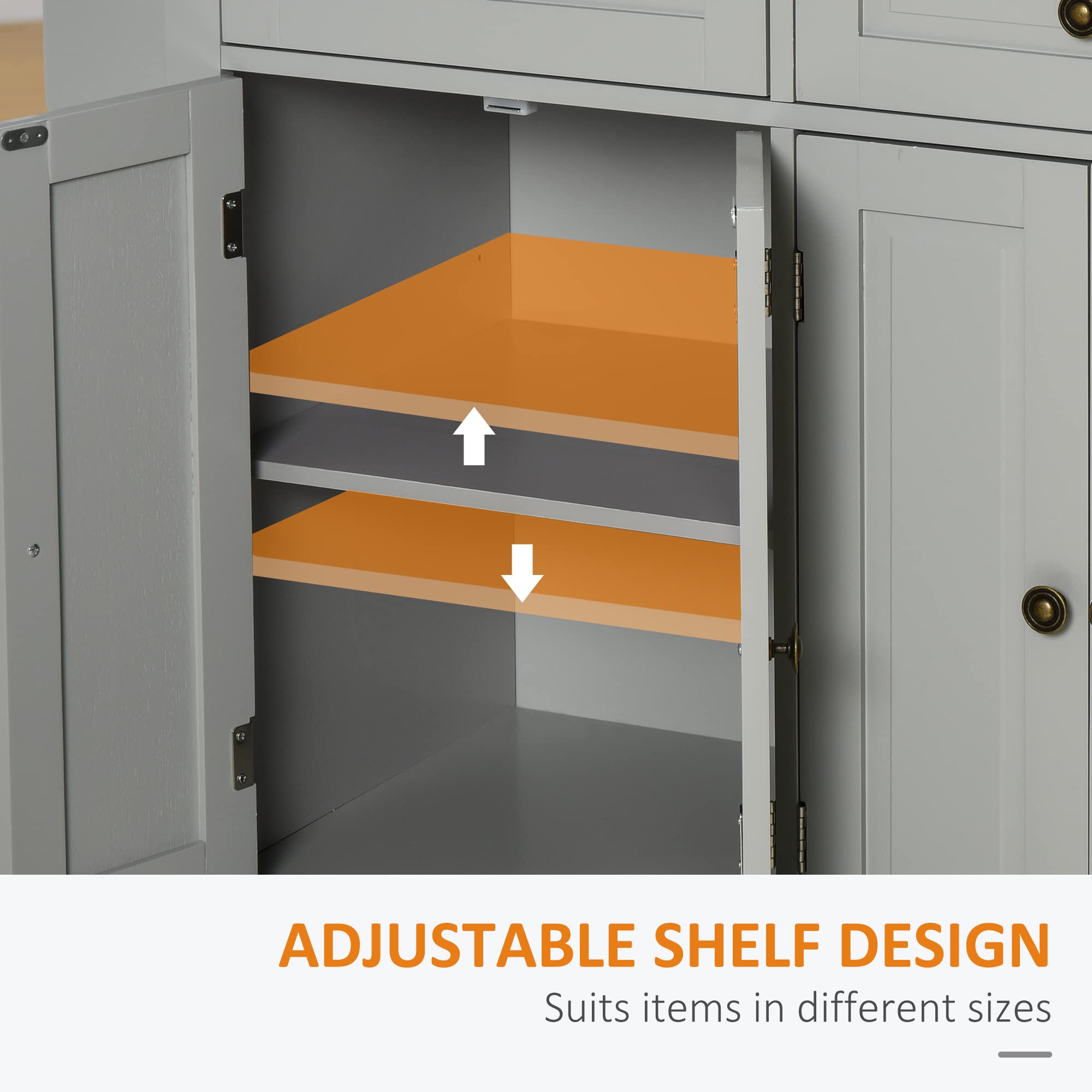 Ample Storage: Includes shelves, drawers, and cabinets to keep kitchen essentials organized and within reach.